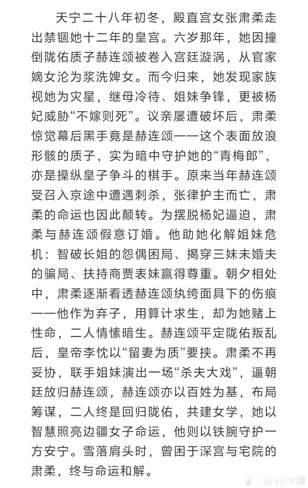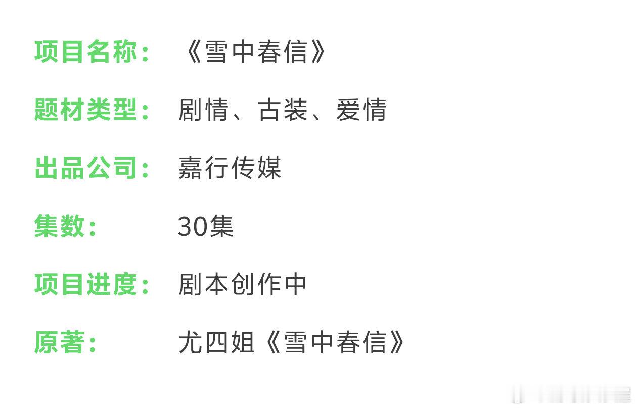 嘉行《雪中春信》这个本子不错哎,是女本位,好姐妹,青梅郎,建女学,守边疆如果按照这个梗概来拍的话,女主有很多高光呢!