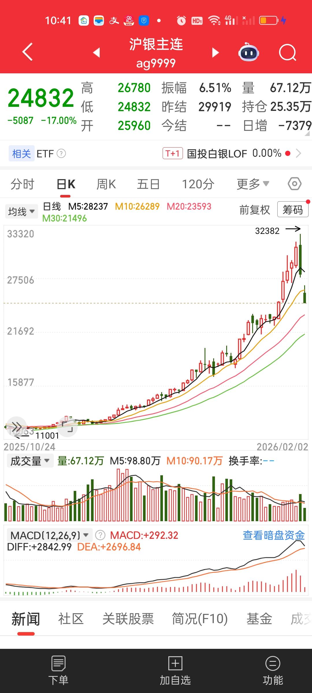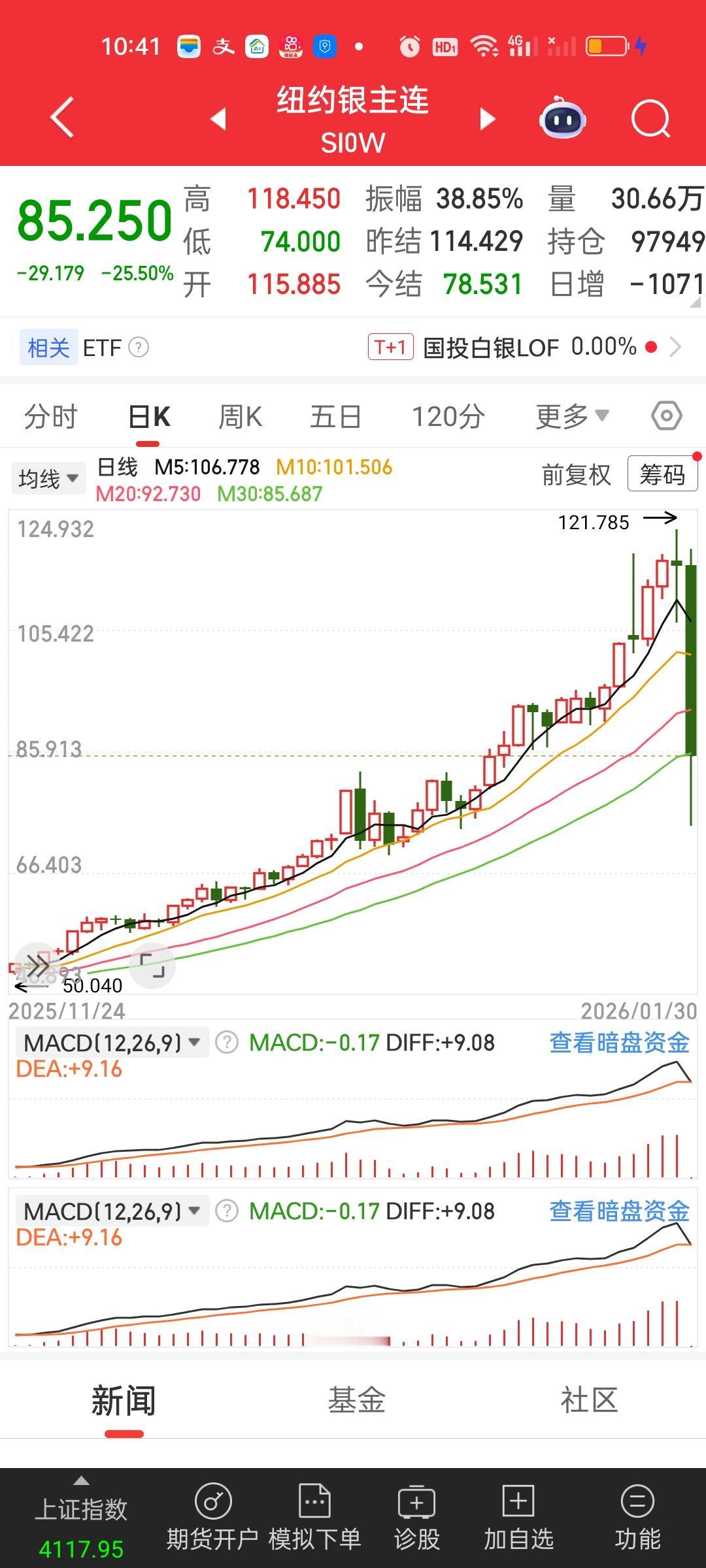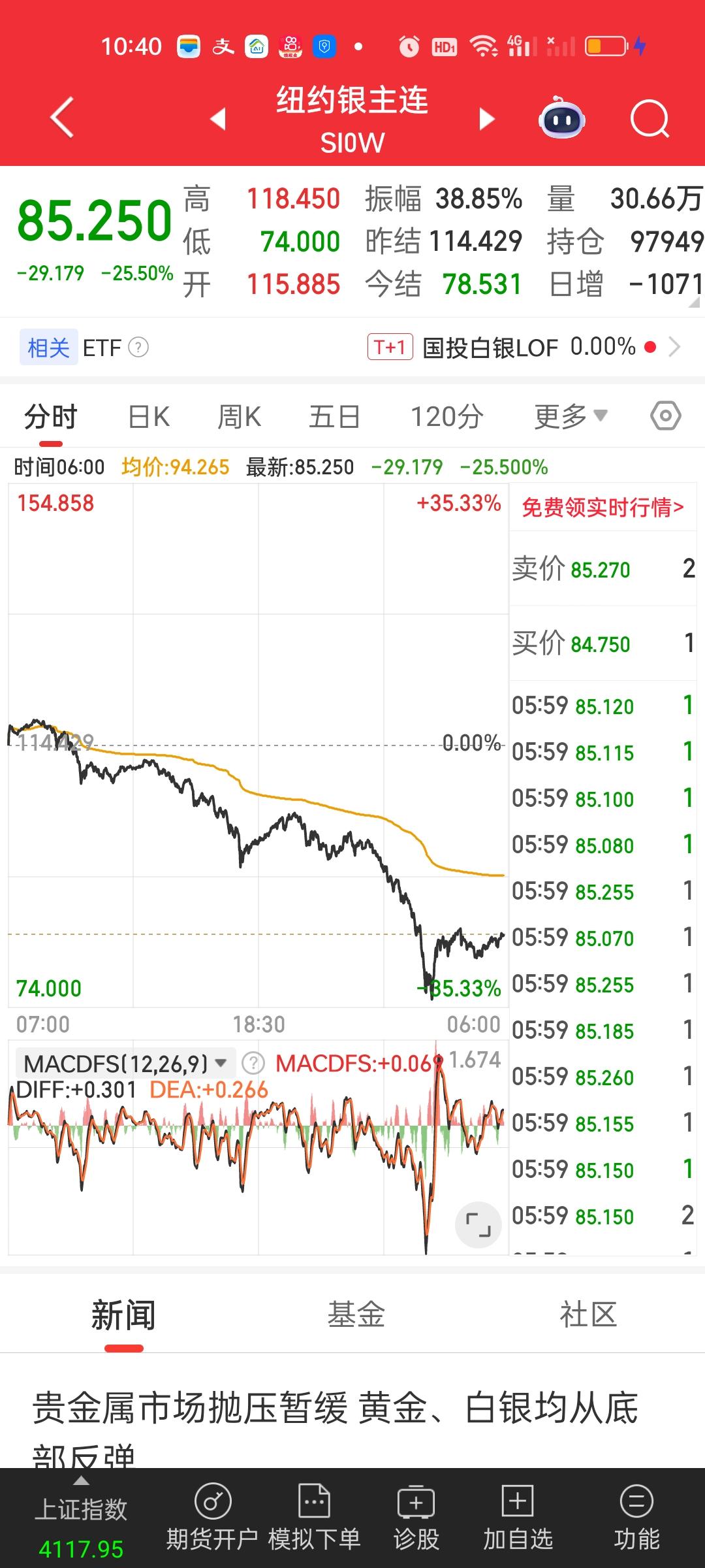 一觉醒来,重仓黄金白银的人天都塌了。纽约银主连单日最高跌35.33%,收盘依旧跌25.50%,黄金跌幅也在10%左右。不管怎么样,下周一开盘一定会反应到我们的相关板块和个股上。下周一的暴击会非常惨烈,重仓黄金白银的人损失可能会非常大。