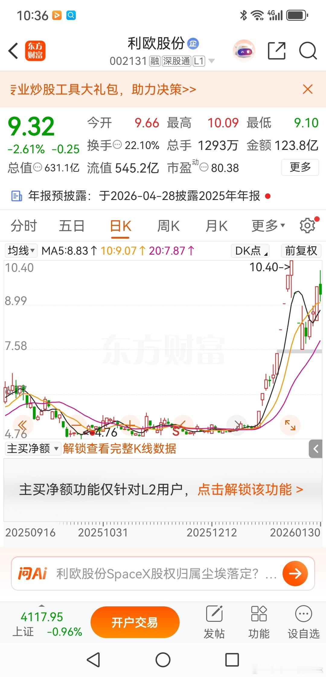 利欧股份,反弹可以已经悄然结束利欧股份,绝对是这波妖股崩塌里面的善股,大多数同期崩塌的妖股仅仅是反弹跌幅的三分之一就掉头向下了。从7.59反弹到10.09,接近反弹了40%,周五最高价看到了10.09元,已经来到了1月15日的巨量成交区。1月15日253亿的成交、43.9%的换手,这个要过去是非常困难的。根据周五的走势,盘中只是瞬间冲高,大部分时间都是在水下的特征,我认为这个大概率反弹已经结束,还在里面没走的耗子尾汁吧!欢迎加入我们的免费交流群财经股票