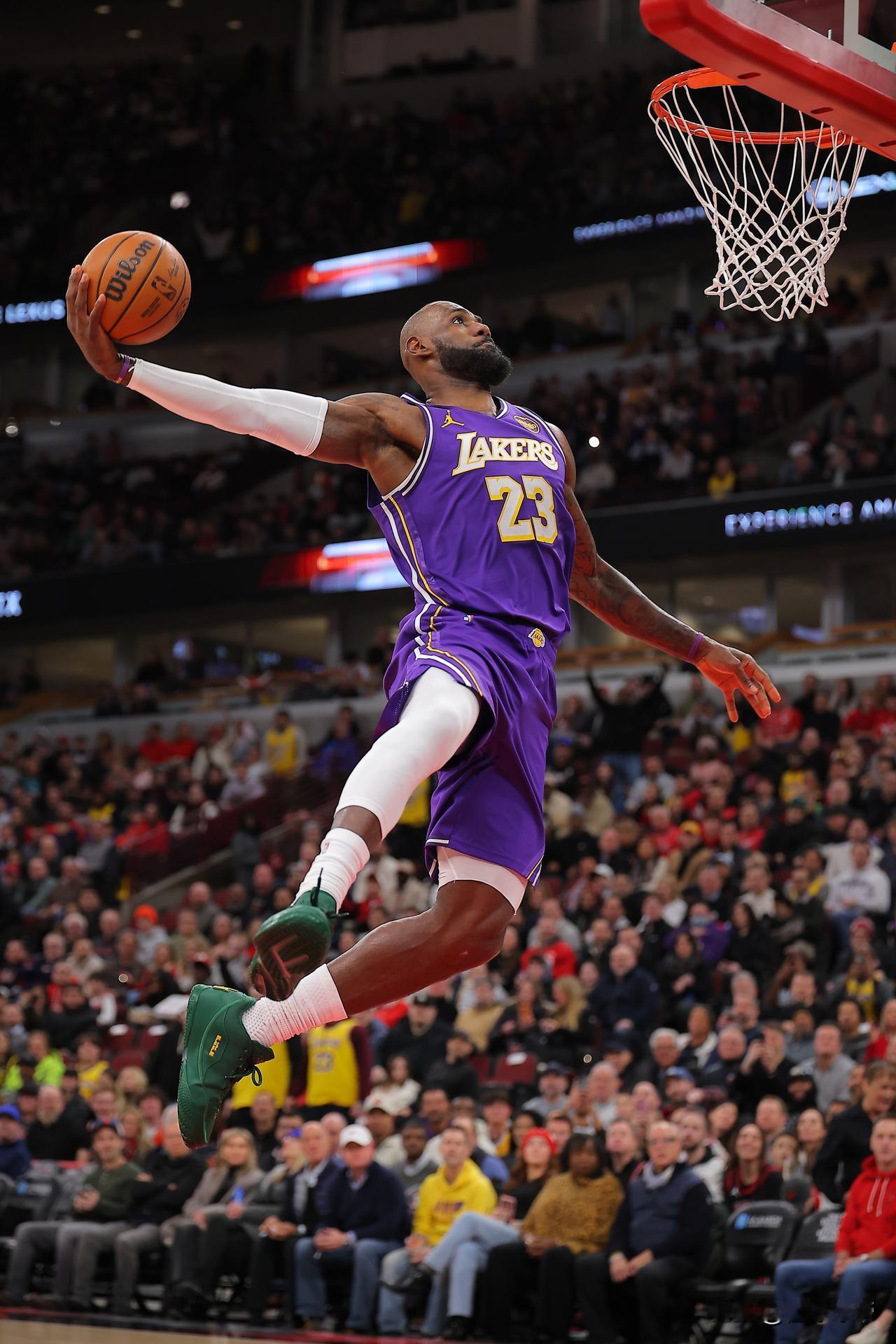 廉颇老矣依然飞天遁地,詹姆斯爆砍20分多次上演爆扣! 在今天湖人与奇才的比赛中,41岁的詹姆斯表现相当出色,全场出战30分钟,投篮16中8,三分3中2,罚球2中2,轻轻松松就拿到了20分3篮板6助攻2抢断的数据,正负值更是罕见的高达+25,湖人也以142-111大胜奇才31分。 詹姆斯在41岁之后打了16场比赛拿到了12次20+得分,而在NBA历史上其他所有41岁及以上的球员打了621场比赛一共只拿到7次20+得分,不得不说詹姆斯真的是太逆天了。 今天詹姆斯也扣爽了,不仅玩空接还上演背扣,这要是参加今年全明星扣篮大赛估计也不会输给年轻人了。