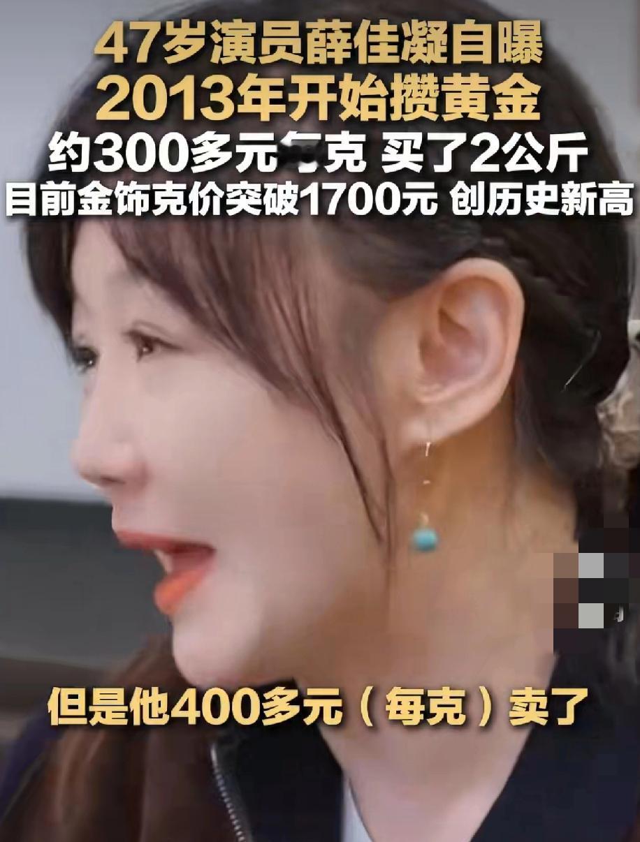 薛佳凝:“我2013年开始买黄金,300元一克的时候我买了2公斤,有个和我关系很好的男演员跟着我买了9公斤,但他在黄金400多一克的时候卖掉了,我的一直没卖,每年还都会继续买一点。” 前阵子,那个大家伙记忆里古灵精怪的“哈妹”薛佳凝,冷不丁在社交平台上发了个视频,这一发可不得了,没聊什么娱乐圈的八卦,也没晒什么名牌包包,而是轻描淡写地讲了讲自己买黄金的往事。 谁能想到,这位今年已经48岁、平时低调佛系的演员,居然是个深藏不露的理财高手,这一囤就是13年,简直是闷声发大财的典型。 视频里的薛佳凝一点明星架子都没有,就像邻居家的大姐在唠家常,她说这事还得追溯到2013年。 那时候金价其实不算太高,大概三百多块钱一克,当时的薛佳凝也是个狠人,看准了机会,一咬牙直接砸进去67万,买了整整2公斤黄金。 这笔钱放在十几年前,那可真不是个小数目,能在二线城市付个全款房了,不得不佩服她当时的魄力。 更有意思的是,薛佳凝当时不是一个人在战斗,她身边有个关系特铁的著名男演员,听了她的分析,觉得这路子野,也动了心。 这哥们手笔更大,直接豪掷近300万,一口气买进了9公斤黄金,那时候两人估计也是想着一起攒点家底,谁成想,同样的起点,后来的结局却是天差地别。 买完黄金之后,金价并不是一飞冲天,中间那是起起伏伏,甚至一度跌回了两百多一克,面对这种波动,薛佳凝的心态稳得可怕。 她压根就没动过卖的念头,把黄金当成了压箱底的宝贝,或者说是另一种形式的“存钱罐”。 不管金价涨跌,她不仅不卖,每年还要雷打不动地再买进一点,就在2025年7月,眼瞅着金价都涨到600多一克了,她还是坚持原则,又补仓了100多克,这种“只进不出”的策略,就是典型的长期主义。 反观那位男演员朋友,心态就没这么好了,后来金价稍微涨了一点,到了400多一克的时候,他盘算了一下,觉得赚得不少了,心里可能也怕再跌回去,于是大手一挥,把那9公斤黄金全给卖了。 当时一算账,赚了60多万,这哥们高兴坏了,觉得自己这波操作简直是股神附体,完美逃顶。 但他高兴得太早了,时间一晃到了2026年1月,市场给这位男演员上了生动且残忍的一课。 从2025年10月开始,国际金价就开始疯涨,到了2026年开年,像周大福、周大生这些金店的挂牌价直接飙到了1680元一克以上,就算是银行回购或者投资金条的价格,也稳稳站在了1200元的大关上。 这时候咱们再回头算这笔账,差距大得惊人,薛佳凝手里那2公斤当初花67万买的黄金,按照现在的行情,市值已经妥妥超过了340万。 这就意味着,她什么都没干,光把金子放在那睡觉,就净赚了270多万,这收益率,比北京那几年的房价涨幅还猛,甚至比她辛苦拍一部戏的片酬来得都要轻松。 而那位男演员呢,估计现在肠子都悔青了,要是他当年能沉住气,像薛佳凝一样把那9公斤黄金留到现在,咱们按投资金条的保守价格算,那也是一千多万的资产。 相比当年卖掉赚的那几十万,他相当于变相“亏”掉了800多万的潜在收益,听说后来这位男演员默默把当年庆祝赚钱的微博都给删了,估计是看着现在的金价,心里实在堵得慌。 薛佳凝这波操作,给所有人都上了一课,她的投资逻辑其实特别朴素,没有什么高深莫测的K线图分析,就是认准了黄金是硬通货,不仅能保值,在那充满不确定性的经济环境下还能避险。 她不贪图眼前的仨瓜俩枣,不搞追涨杀跌那一套,就是傻傻地攒、慢慢地存。 网友们看完这视频都炸锅了,一个个都在感叹“姜还是老的辣”,有人还在猜那个倒霉的男演员到底是谁,是胡歌还是陆毅?当然,薛佳凝嘴严,没透露名字,给大家留了个悬念。 但大家更佩服的是她的定力,毕竟在资本市场里,能忍住不看短期波动的人太少了。 这件事说白了,就是心态决定命运,那位男演员虽然赚了点快钱,但也只是捡了芝麻丢了西瓜,而薛佳凝这种不急不躁、稳扎稳打的作风,才让她笑到了最后。 这哪里是在买黄金,这分明是给大伙演示了一遍什么叫真正的“时间的朋友”。 所以说,心急吃不了热豆腐,理财这事,有时候比的就是谁能沉得住气。 对此你怎么看?