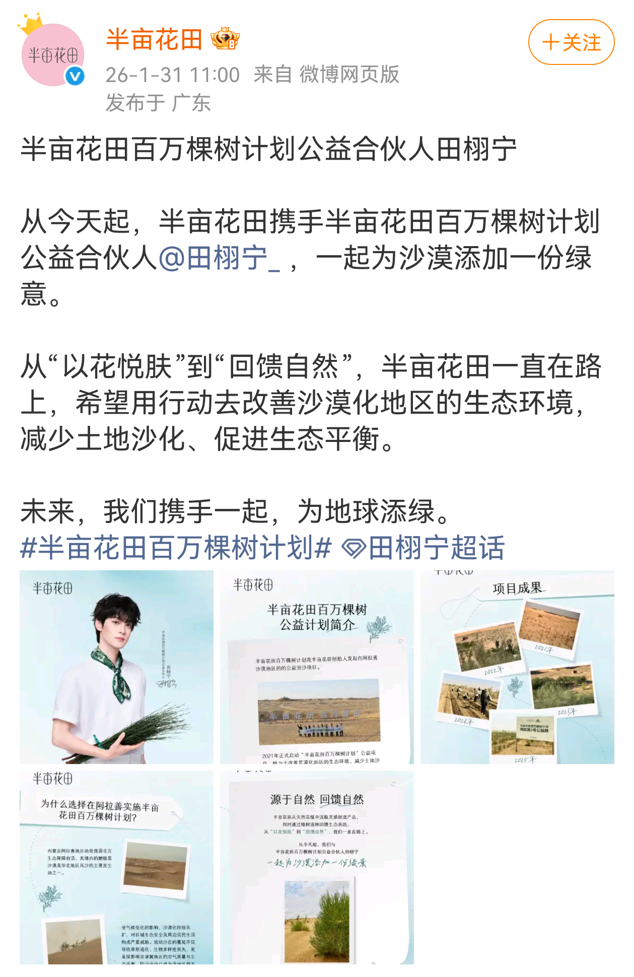 半亩花田百万棵树计划公益合伙人田栩宁🐮田栩宁半亩花田品牌代言人田栩宁代言半