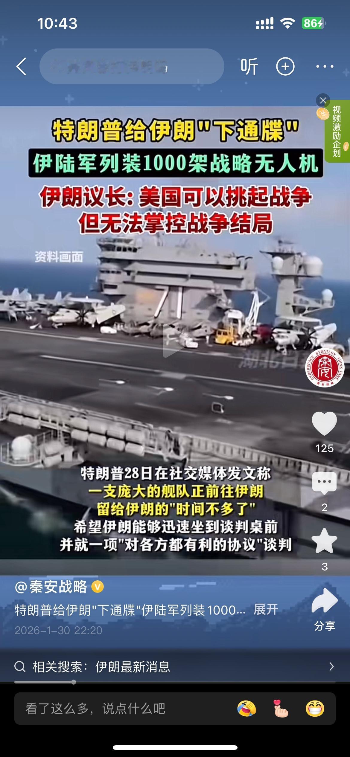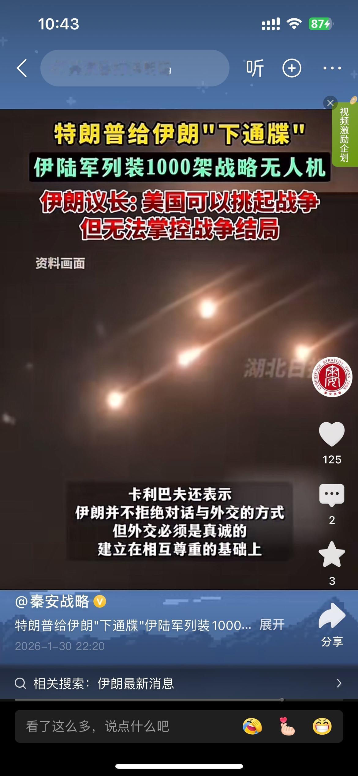 特朗普给伊朗下通牒式的极限施压,留给伊朗的就剩“嘴硬”了,伊朗议长称美国可以挑起战争,但无法掌控战争结局! 这话说的伊朗自己信不?美国不能掌控战争结局,伊朗可以掌控战争结局吗? 嘴上说着不拒绝对话和外外交方式,又说外交必须是真诚的,建立在相互尊重的基础之上! 如果美国真的对你相互尊重,他还派庞大的舰队到你周边干嘛?真诚?对美国人讲真诚,看来伊朗到现在时间点了,确实真诚的可以!