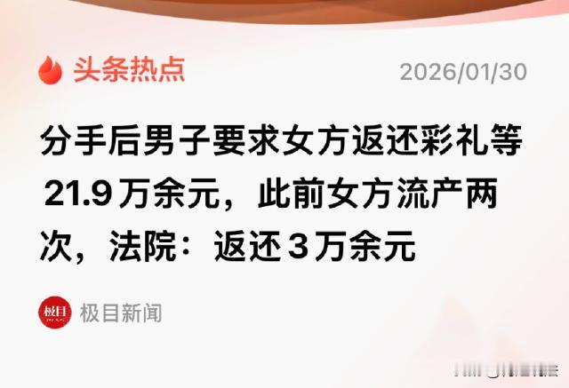 山东,一男子遇到自己女友,二人陷入热恋,同居后,女友怀孕了。男方表示暂时不想要孩子,就让女友去把孩子弄了。之后男子又让女友跟自己长期同居,没多久,女友又怀孕了,这次两人又商议说,还没结婚,还是没法要孩子啊,又让女友去把孩子给弄了。这次手术不是很好,导致女友之后再也无法生育了。 (本案例来源:极目新闻报道) 据报道称,得知女友没法生育,男子则无法接受,就准备分手。甚至还把女友给上诉了,因为之前家里给过女友21万元的彩礼钱,男子要求女子全额返还。 据悉,一男子名叫臧某,经过朋友介绍,见到了一位不错的女孩邵女士,当时臧某就看上了对方,表示想要继续深入交往。 没多久,臧某就跟邵女士确定了恋爱关系,两个人就开始同居,不久,邵女士发现自己竟然怀孕了。 不过,臧某感觉暂时还不想要孩子,就让女友先去把孩子给弄了。 之后,两个人又继续相处,得知两个孩子相处的不错,双方父母也就开始重视这件事,准备给他俩安排一下婚事。 臧某家就给了女方21万元的彩礼钱,也可以用作恋爱花销。之后,两个就举办了婚礼,但是并没有领证。 这样的关系确定之后,臧某就把女友接过来一起居住,二人就开始长期同居。 然而,这样的同居关系,也就持续了10个月,因为之后又出事了。 非常可悲的是,女友去检查,又怀孕了。又给臧某怀了个孩子,因为考虑到已经拿掉过一次,邵女士有些心疼,她感觉缘分到了,就把孩子留下吧。 但是这个决定得到了臧某的反怼,他感觉时机还是不对,毕竟自己也没钱,事业也不咋地,所以,还是不准备要这个孩子。 就这样,邵女士带着遗憾,又去打掉了。但是这次不是很顺利,邵女士身体受伤严重,往后余生,她再也没法生育小孩了。 得知这件事,臧某一点没有感觉是自己的问题,反而认为:“我要一个不能下单的母鸡干啥呢?” 而且,他还不断殴打邵女士,一言不合就恶言相对,要么就是伸手问邵女士要钱花。最后,前后10个月的时间,两个人的感情走到了尽头,准备分手。 分手之后,臧某提出:支付了6.6万元的彩礼,转账8.2万元。还有首饰、过户了一台车子,加起来一共21.9万元,必须要全部返还。 这件事引发网友探讨:这位男方,人家女方都不能生育了,还要求人家退还彩礼,你也真是够“渣”的! 不过也有网友说:没有办法,因为没有登记结婚,按照法律规定,女方只能依法退还啊! 根据相关部门最后判定,扣除女方生育费、身体损害费、酌情判定退还20%的彩礼开支,男方最后要回来3万多元。 本案释法: 男女相处期间,只举办婚礼没有领证,男方恋爱开支、彩礼钱一共21万给到女方,后来两次怀孕男方不要,让女方去做手术,导致女方不能生育身体也有损失。男子要求退还21万,可以得到支持吗? 根据《民典法》规定,双方约定结婚,之后情感破裂,如果想要返还彩礼,则需要满足一定的特定条件。包括是否共同生活、是否领证、是否因为支付彩礼导致家庭经济困难等。 双方虽然没有领证,但是举行了婚礼、还共同生活了、女方还给其怀孕之后还流产身体有损害。男方存在明显过错,因此,诉求返还彩礼,可能不一定获得支持。 因此可知,男方无权要求全额返还彩礼或者恋爱开支,女方反而可能会获得倾斜保护。 相关部门在判定的时候,也是综合判断,一方面看到男方态度的转变,甚至殴打女方;一方面看到女方的付出,还因此不能再生育,最后大幅减少返还金额,甚至还可以判定不予以返还。 对于这样的判定,大家觉得合理吗? 到最后,男方也就要回了3万元,21.9万的付出,在他看来很多,但是殊不知,邵女士因此付出了更多,包括身体伤害。 看完本案,您作何感受?不妨评论区里留言,一起来讨论吧!