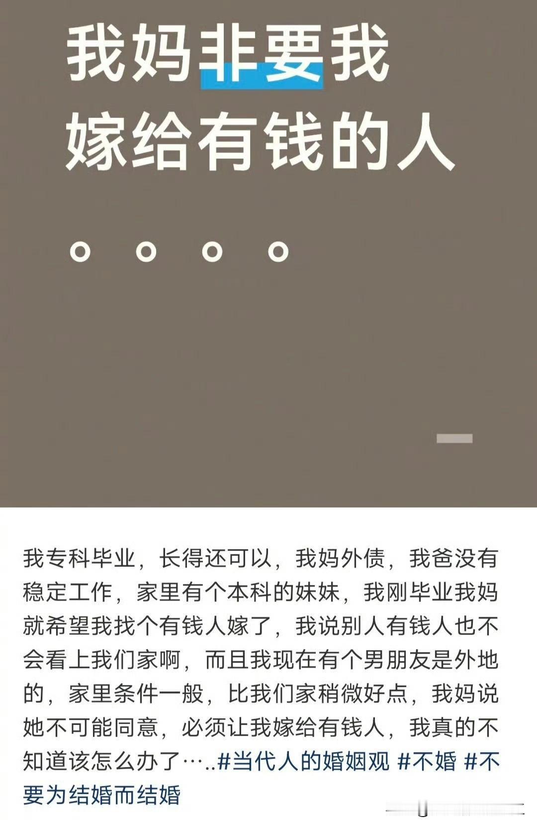 网友发帖求助,她妈让她嫁个有钱人,帮她妈还债……