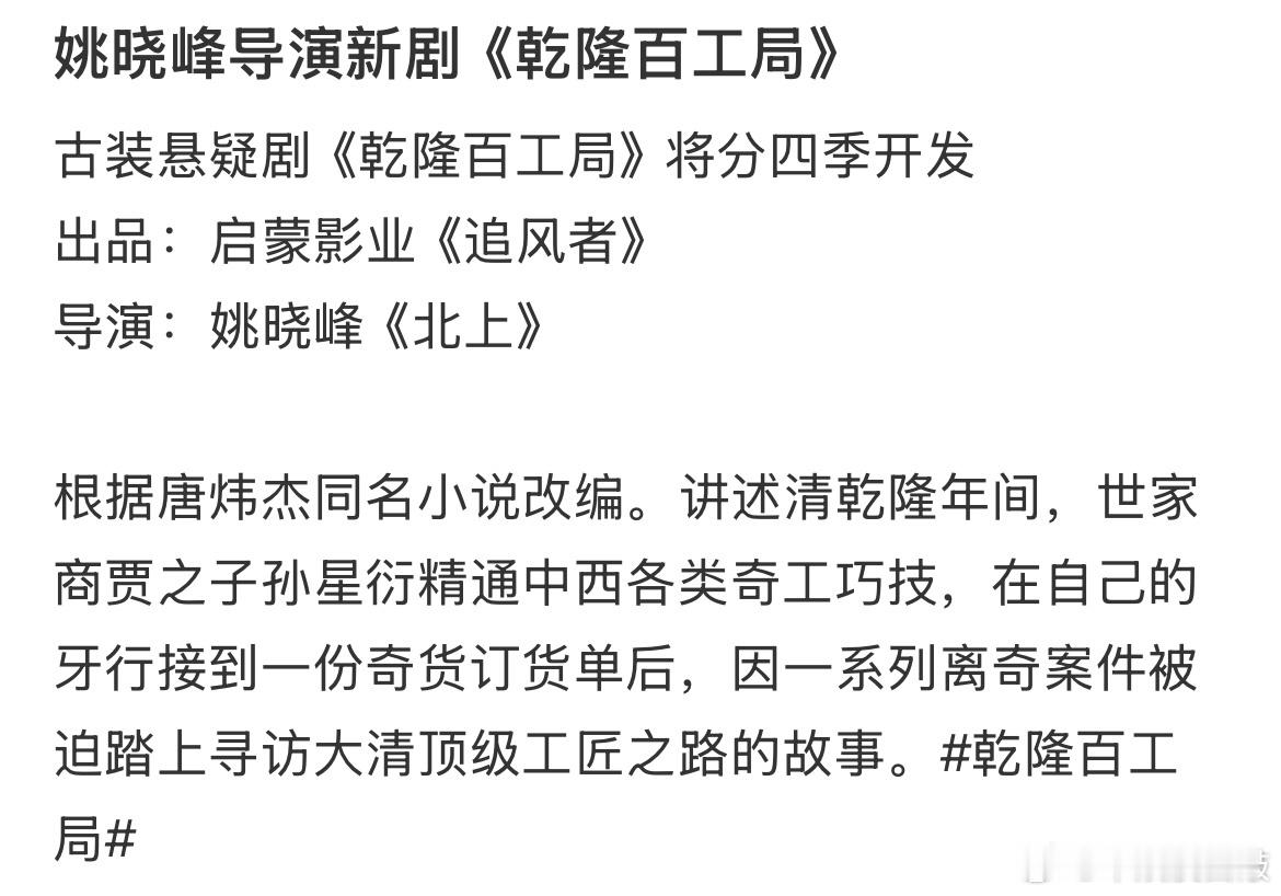什么剧还没拍就勾引我 什么剧还没拍就勾引着我等更啊!从《乾隆百工局》到《文城》,各种题材应有尽有,每一部都精准戳中追剧人的喜好,这波“剧蛊”我先干为敬!!启蒙影业片单