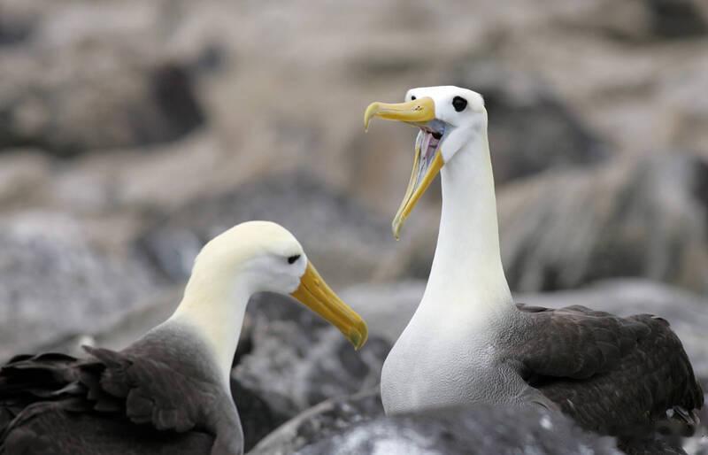 图1:加州大学圣地牙哥分校研究人员,23日在加州「白石角」外海发现「波浪信天翁」。 (美联社)图2:加拉巴戈斯群岛上的「波浪信天翁」。 (美联社)