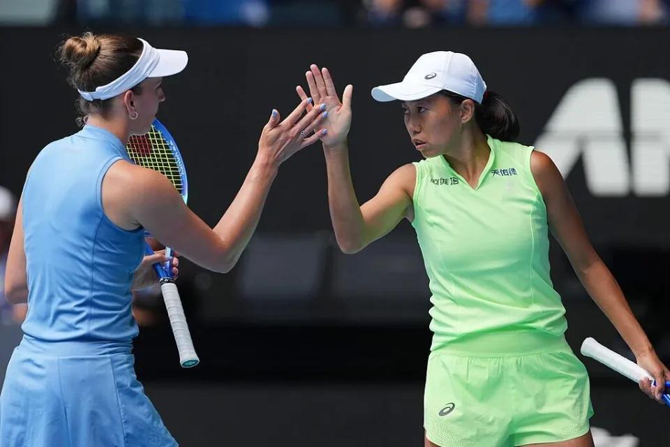 张帅组合夺得澳网女双冠军,这简直太牛了!在高手如云的澳网赛场上,她们一路过关斩将,太不容易。 张帅在网球界一直是实力与坚韧的代表。这次和搭档配合默契,每一场比赛都拼尽全力。赛场上,她们灵活走位、精准击球,每一个回合都扣人心弦。 澳网作为网球四大满贯赛事之一,竞争极其激烈。张帅组合能在众多强手中脱颖而出,实至名归。这不仅是她们个人的荣耀,也是中国网球的骄傲,激励着更多人投身网球运动。