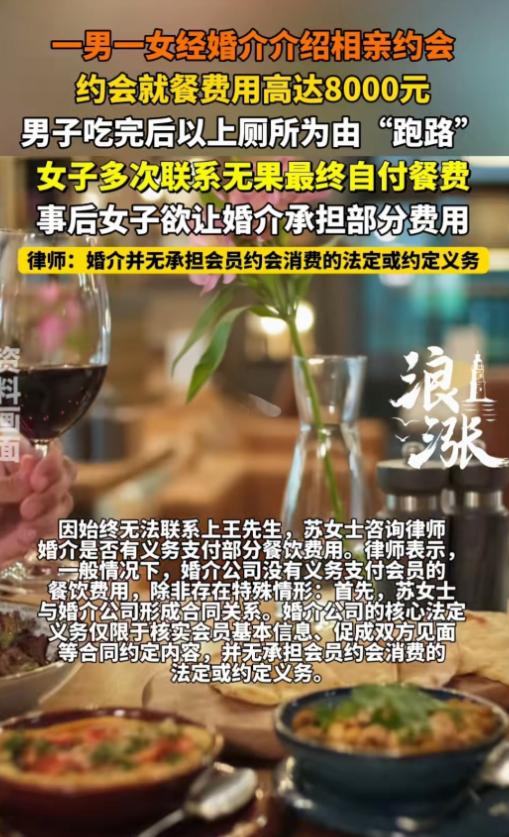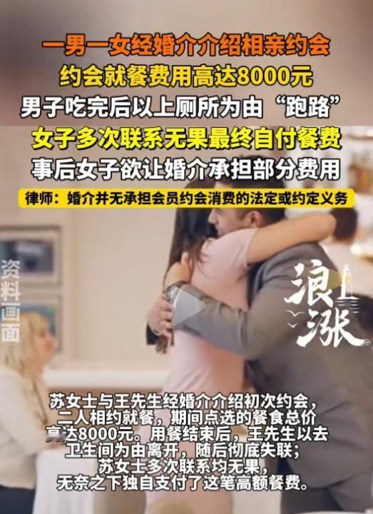 开局精彩,结局惨了!1月30日报道,北京,一女子和相亲对象第一次见面,约在某高档餐厅,女子上来就点了一大桌子好吃的。刚吃完,男方就说去卫生间方便,女子以为男方借口去结账了,不料男方一去不回还关机。这顿饭花了8000,男方溜了,服务员不让走,女子支付8000后气炸:没少吃,还逃单,活该单身! 谁能想到,一场原本充满期待的相亲,最后竟然演变成了一出让人哭笑不得的“逃单记”,苏女士(化名)前阵子花了大价钱报了个婚介班,想着能找个靠谱对象。 婚介所那边也是拍胸脯打包票,给她介绍了一位所谓的“企业高管”王先生(化名),说这人事业有成、成熟稳重,而且花钱也大方,简直是打着灯笼都难找的好男人,苏女士听得心花怒放,满心欢喜地去赴约了。 两人约在市中心一家挺高档的餐厅见面,刚一落座,这位王先生就展现出了极大的热情,直接把菜单拿过去,一边说着“初次见面,必须得好好招待,别跟我客气”,一边就开始疯狂点菜。 什么千元级的刺身、海参,还有一瓶2000块的进口红酒,眼都不眨地往上加,完全没问苏女士爱吃什么,或者能不能吃完。 苏女士看着菜单上的价格,心里其实有点犯嘀咕,觉得这一顿饭未免也太奢侈了,但毕竟是第一次见面,脸皮薄,不好意思直接驳人家面子,只能委婉地说“够了够了,太多吃不完”。 可王先生根本不当回事,大手一挥说“难得见一面,多尝尝鲜嘛”,最后硬是整了满满一大桌子菜。 吃饭的时候,王先生表现得那是相当不错,又是聊职场趣事,又是谈人生规划,嘴皮子利索,谈吐也显得很大方得体。 苏女士心里的戒备慢慢放下了,甚至开始觉得这人确实有点东西,说不定真能发展发展,她心想,既然是你主动点的这些贵菜,那肯定是你买单了,也就没多操心这事。 等到大家都吃得差不多了,服务员拿着账单过来了,就在苏女士刚想开口说要不AA的时候,王先生突然站起来,笑眯眯地说:“不好意思啊,我去个洗手间,马上回来结账。” 苏女士也没多想,点点头就让他去了,结果这一去,简直就像肉包子打狗,有去无回。 她在位子上干坐了一个小时,起初还以为厕所排队或者人家有急事,后来实在坐不住了,发微信没回,打语音电话没人接,最后再打电话,提示“正在通话中”,再发微信一看,好家伙,直接被拉黑了! 这时候苏女士才恍然大悟:自己这是被逃单了啊!看着桌上的残羹冷炙,再看看手里那张8000块钱的账单,她脑子里嗡嗡作响,周围吃饭的人时不时投来异样的目光,服务员也过来催了好几次。 8000块钱,那是苏女士一个月的工资啊,就这么一顿饭的功夫没了,她心里那个气啊,那个委屈啊,但也没办法,总不能赖在人家店里不走吧?最后只能咬着牙、忍着泪,刷卡把这笔冤枉钱给付了。 走出餐厅那一刻,她实在是忍不住了,对着空气大骂:“吃了那么多还敢跑单,一点担当都没有,活该你单身一辈子!” 回到家,苏女士越想越窝火,第二天一大早就去找婚介所讨说法,她觉得自己交了5800块钱会员费,结果给我介绍这么个不靠谱的人,你们这服务也太水了吧,怎么也得赔偿点损失。 结果婚介所负责人的态度更是让人心寒,人家直接来了句:“我们核实过身份了,他确实是高管,牵线的任务我们完成了,至于吃饭花多少钱、谁买单,那是你们俩的私事,我们管不着。” 不管苏女士怎么理论,婚介所就是一副“雨女无瓜”的态度,顶多也就是“以后再给你介绍别的”。 没办法,苏女士只能把这遭遇发到网上求评理,这一发,网上立马炸了锅,网友们分成了三波,吵得那叫一个热闹。 一波人坚决站苏女士,痛骂那个王先生:“没钱装什么大款?点了那么多菜还逃单,这人品简直烂透了!”“哪怕说一句AA也行啊,借屎遁跑路还拉黑,真是刷新下限!” 也有一波人觉得苏女士自己也有责任:“第一次见面就敢吃8000块?你自己心里没点数吗?这不就是想借机测试人家财力结果翻车了吗?”“死要面子活受罪,以后长点心吧。” 还有一波人把矛头对准了婚介所:“收了钱就这服务?只管拉郎配不管人品审核?这也太不负责任了!” 后来有律师出来支招了,律师说,王先生主动点餐并暗示买单,最后却逃单,这属于民事违约。 苏女士完全可以拿着消费凭证、聊天记录和监控录像去起诉他,要回那笔钱,如果能证明他是故意设局骗吃骗喝,那还可能涉嫌寻衅滋事,能报警抓他。 现在,苏女士已经搜集好了证据,准备走法律程序维权,她也很后悔,说早知道就不该为了面子硬撑,遇到这种离谱的高消费就该直接喊停。 她也用自己的血泪教训提醒大家:相亲第一次见面,最好还是去个平价点的地方,消费前先说好怎么买单,千万别像她这样被人当了冤大头。 这事说到底,真是一场对人性和消费观的终极考验,真正靠谱的人,哪会干这种缺德带冒烟的事啊。 对此你怎么看? 信源:逐浪新闻