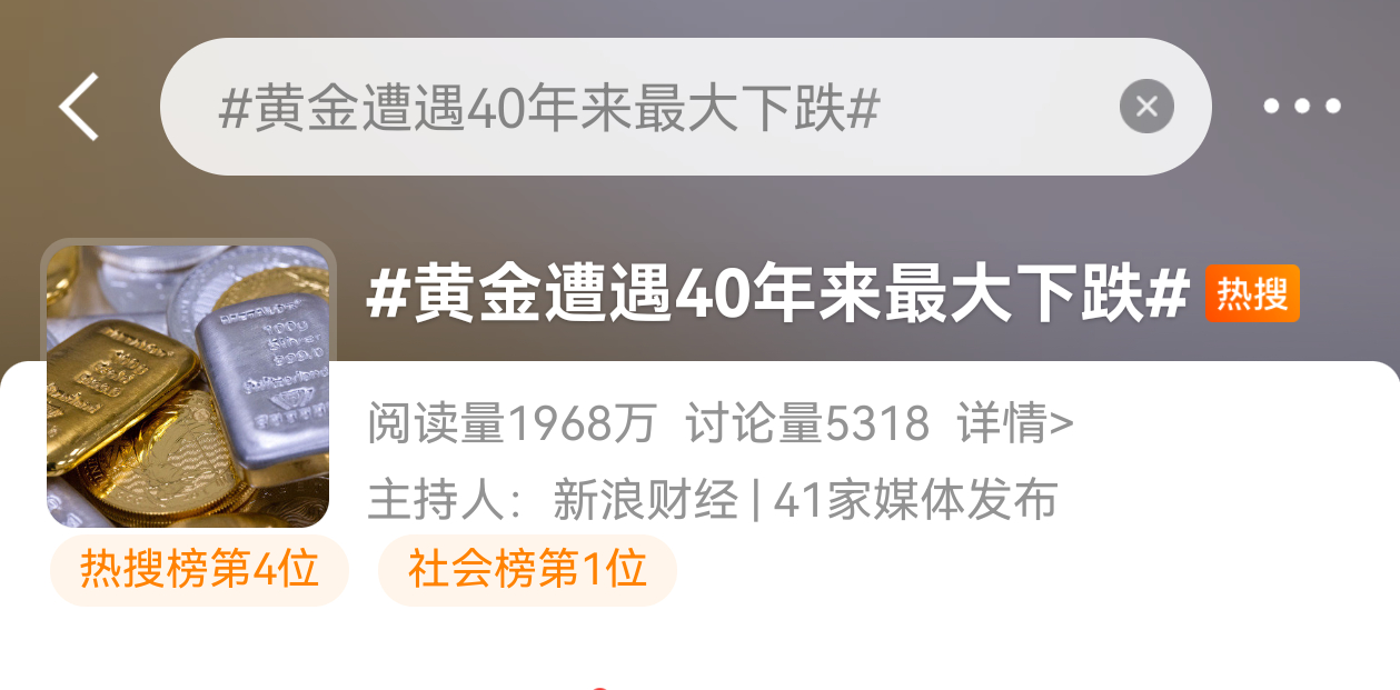同志们,你们还好吗? 黄金遭遇40年来最大下跌