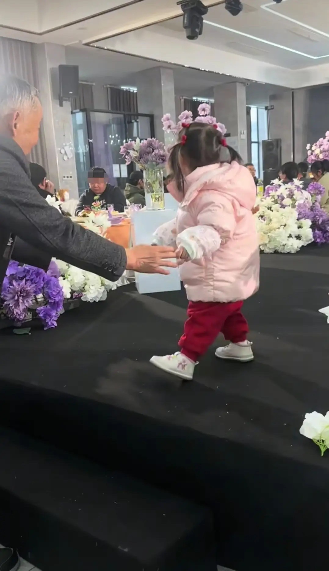 林允爸爸妈妈喝喜酒被偶遇,看起来很朴实,带着一个可爱的小女孩!
