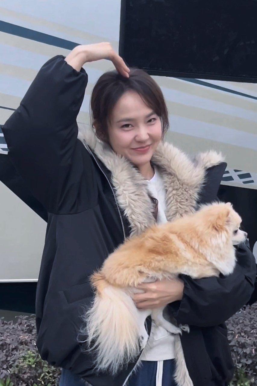 张天爱跟素人合影,胯真的好宽,大宅院似的