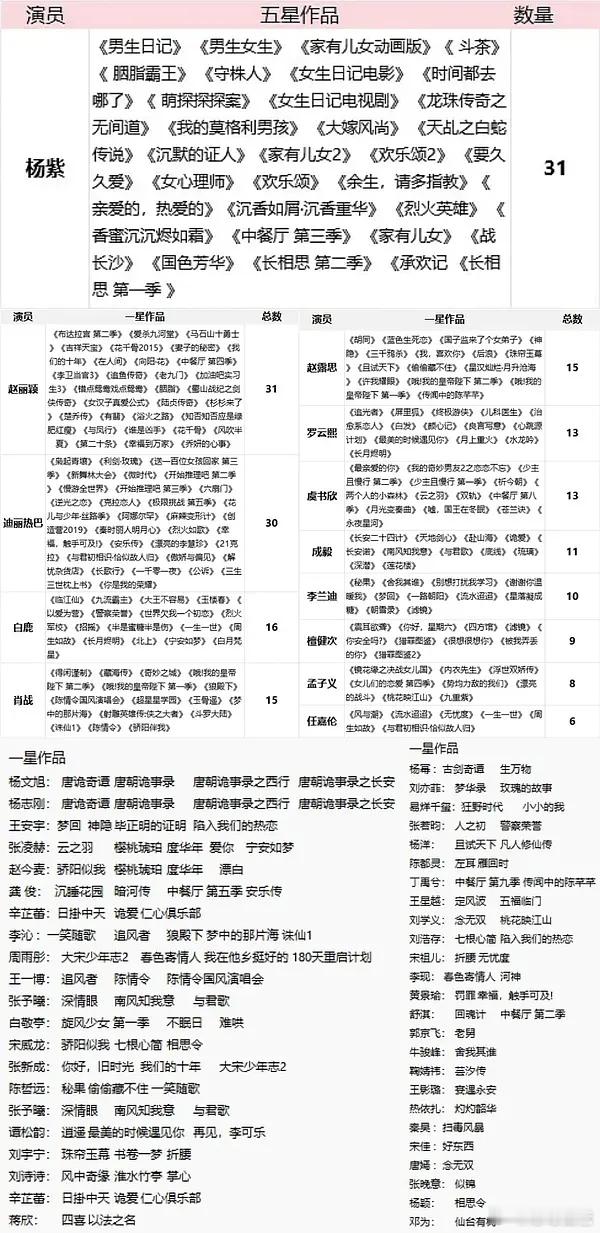 杨紫家居然给这么多人豆瓣打了一星
