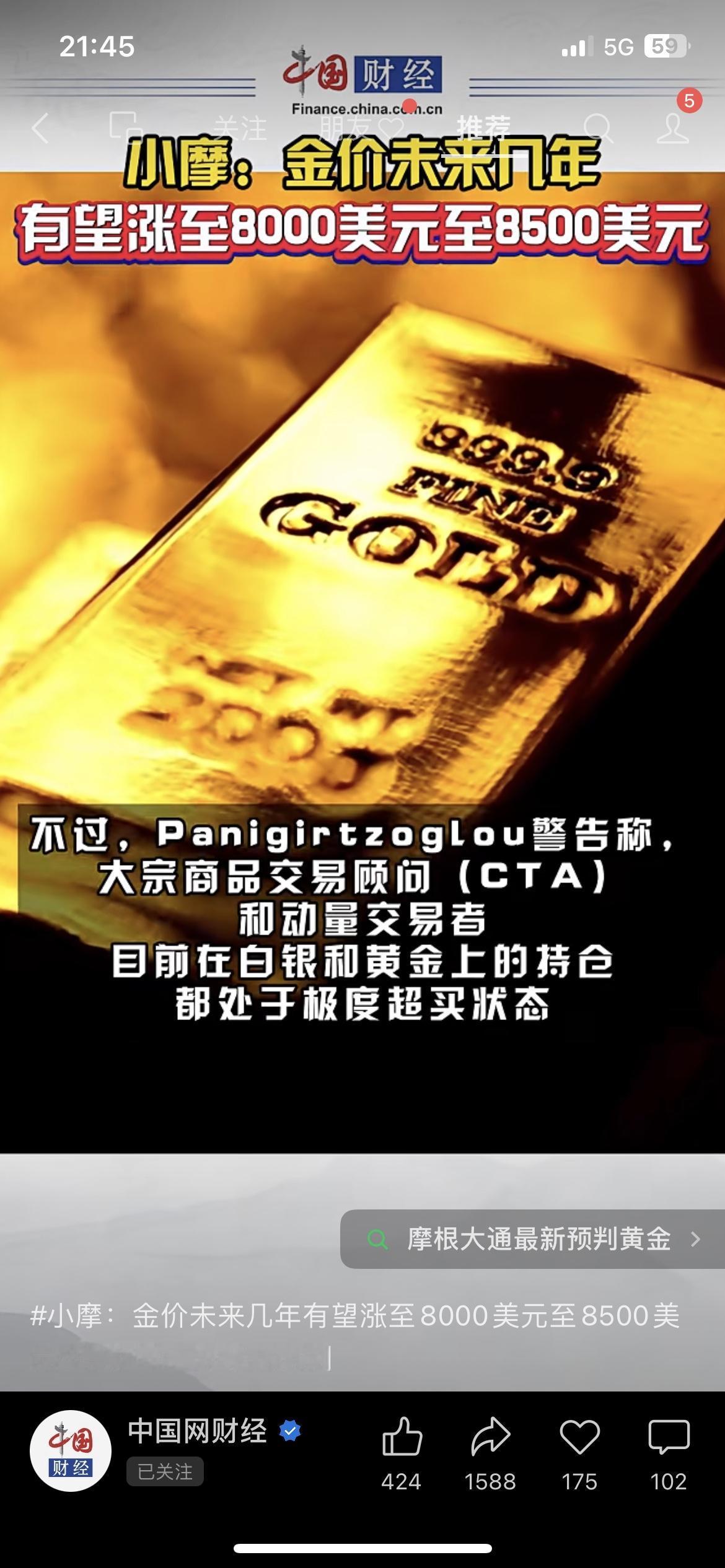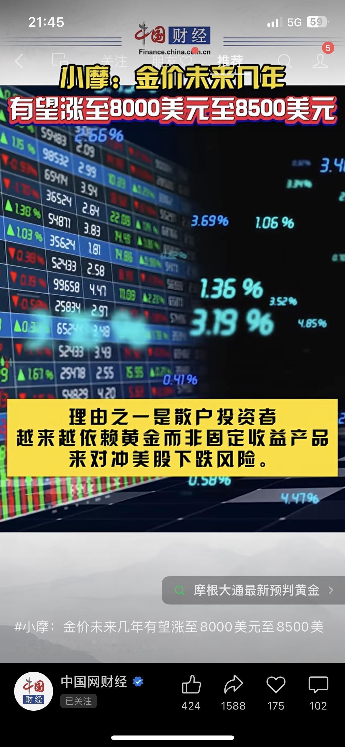 📈疯了!小摩喊黄金涨到8500美元,敢信? 摩根大通喊黄金未来涨到8000-8500美元,瑞银也跟涨至7200美元,却偷偷警告贵金属已超买。 机构喊涨别上头,看看就好别乱冲 你会跟着机构加仓黄金ETF,还是只当热闹看? 黄金目标价 机构观点 财经热点 理财参考 市场有风险,投资需谨慎