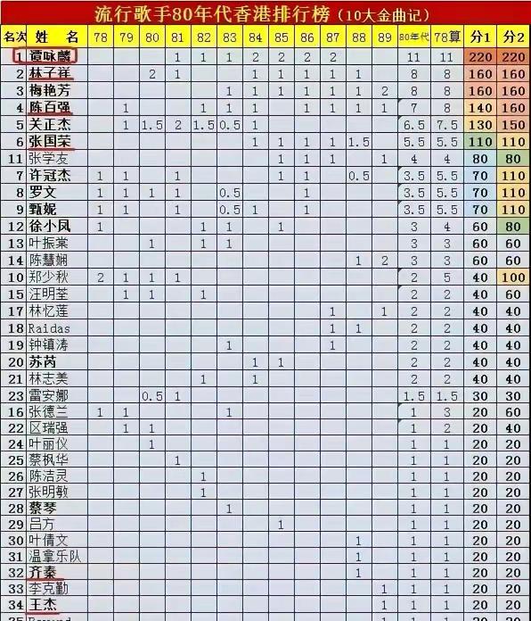 流行歌手80年代香港十大中文金曲数量排行榜:你最喜欢哪一位?