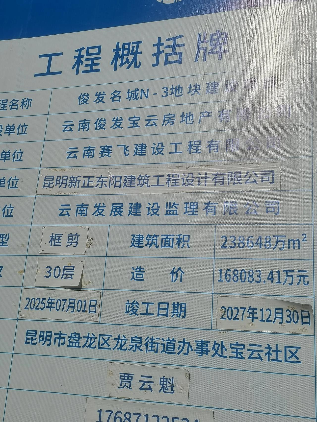 俊发城龙泉古镇边上的这个地块复工了,总共3幢住宅楼,最高30层。是金地代建的,跟俊未来城的一个公司一样都是金地在代建,如果不是金地,都是烂尾躺平的状态。 这个项目第一幢已经封顶了,样板房都在装修,一整层,工期是27年12月30日,边上是龙头街,龙头街地铁站,都是板楼,改规划了的,按以前的规划,如果是俊发自己造,又是四十多层的大简子楼,昆明的这些烂尾楼住宅还是金地,龙湖等做代建,要不然还是烂着。希望这个项目如期完工,金地能把俊发的这个代建的项目完美收官,以上仅供参考,属个人意见!