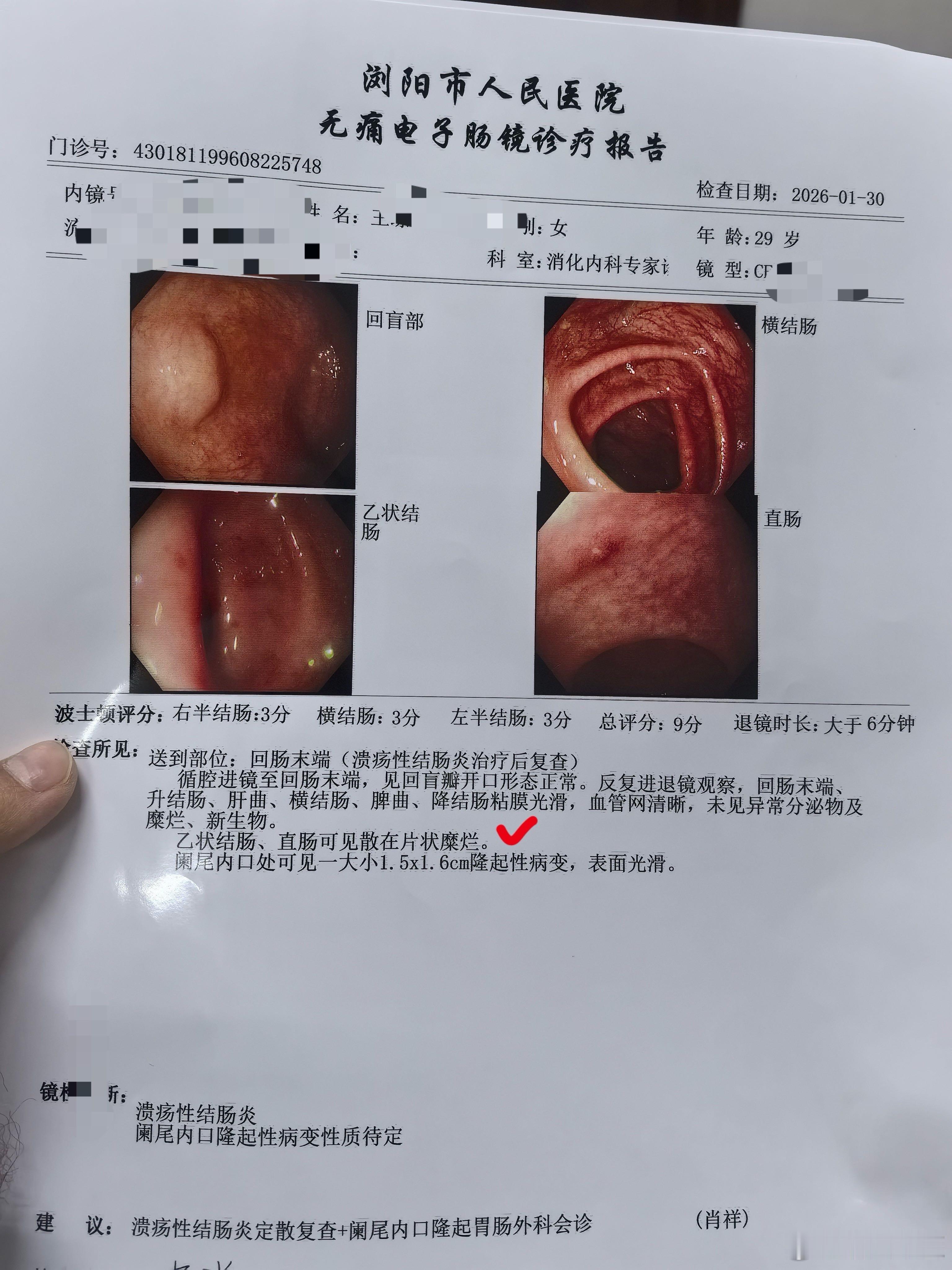 治疗溃疡性结肠炎,温阳很重要。今天收到一个病人肠镜复查的结果,乙状结肠、直肠还有一点点糜烂,不过对比上次的肠镜结果,整个结肠都存在较多问题,这次,已经好了很多。再巩固巩固,应该就没啥事了。很多人看到所谓的肠炎,就清热利湿,其实不完全是这样,不少病人都有阳虚的一面,比如小肚子怕冷,手脚怕冷,不能吃凉的,受凉了就容易拉肚子等等,无一例外都提示阳虚,治疗的时候要温阳才行。乌梅丸就是比较合适的药方,三分清热,七分温阳,在基础上加一点止血、促进粘膜修复的药,效果就出来了。
