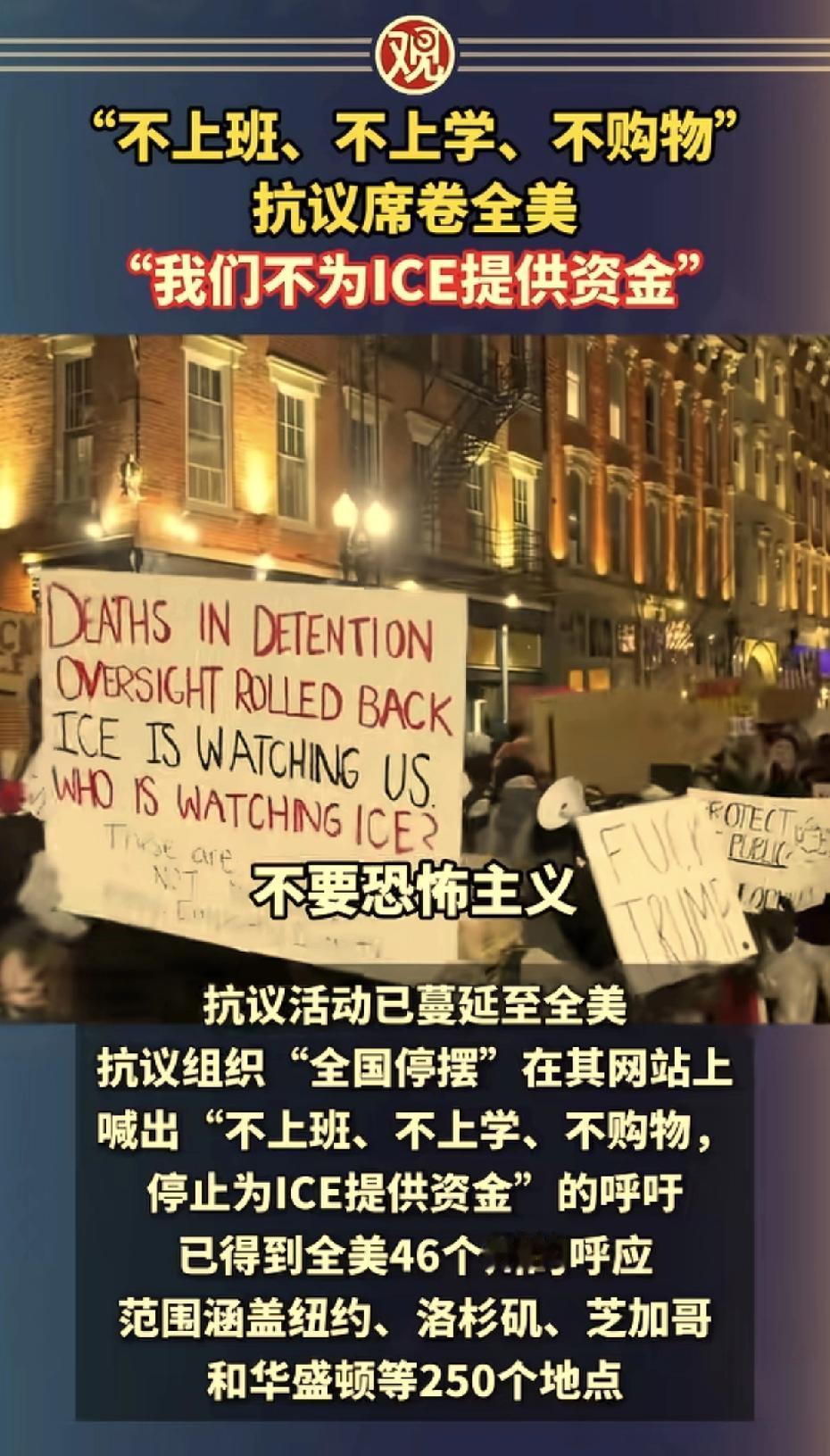 美国人抗议的口号是不上班、不上学、不购物、不为ICE提供资金。 我怎么感觉美国人已经甘地化了?这不就是当年印度圣雄甘地提出来的不抵抗不合作政策吗? 我都不知道美国人手里那么多的突突突是干嘛用的? 明明可以通过其他的方式表达诉求,非要学甘地?
