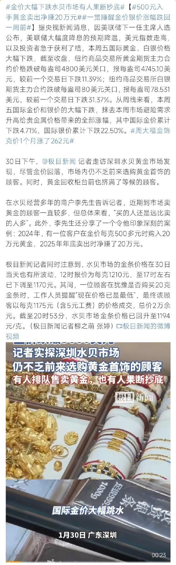 金价大幅下跌水贝市场有人果断抄底 如此高位之下有人敢抄底也是胆大。想起了十几年前6000点的时候,出现下跌一些人拼命下去抄底,6000时抄底、5000时抄底、4000时更是全额抄底,结果一下子到了一两千点,多少人被长期套住割肉平仓。白银行情同样如此,2013年很多人在每克8块抄底,结果到了2块多。