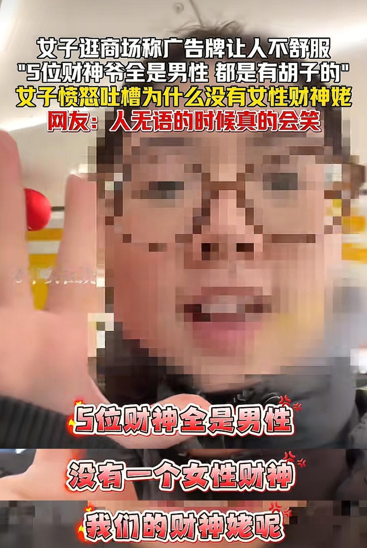万万没想到!北京商圈,这位女子逛商场时的一句吐槽,竟在网上炸开了锅!起因只是一块春节主题广告牌,上面5位财神爷清一色是留着胡子的男性形象,女子当场忍不住愤怒发问:“为啥就没有女性财神姥?”,这番质疑迅速引发全网热议,有人力挺有人反驳,连民俗专家都被惊动了! 事发当天下午,女子和朋友逛到北京某热门商圈,刚走到中庭就被这块红彤彤的春节促销广告牌吸引,可定睛一看,上面的五路财神全是传统的男性长者形象,个个留着长胡须,身着锦袍。 “怎么全是男的?就不能有女性财神吗?”女子越想越觉得不舒服,当场对着镜头吐槽,语气里满是不解和气愤,“节日宣传也该有多元视角吧,女性就不能代表吉祥富足了?” 她的朋友在一旁劝她别较真,说这都是老祖宗传下来的民俗,女子却觉得,传统也不是一成不变的,现在都讲究性别平等,为啥吉祥符号就得“重男轻女”。 这段视频被发到网上后,瞬间就火了。 网友们的评论直接分成了两大阵营,吵得不可开交。 支持女子的网友表示,这是对性别平等的合理呼吁,传统民俗也该与时俱进,增加女性吉祥形象的呈现,没什么不妥;反对的网友则觉得这是小题大做,财神爷的形象传承了上千年,没必要强行改动,甚至有人调侃:“难道要凭空造个财神姥出来?” 还有不少中立网友看热闹不嫌事大,纷纷@涉事商场和广告设计方,等着看他们的回应。 知情人说,这块广告牌是商场为了迎接春节赶制的,设计团队当初就是照搬了传统财神形象,压根没考虑过性别多元的问题,此前在内部审核时也没任何人提出异议,谁能想到会引发这么大的争议。 而当事人在后续的采访中也强调,自己不是故意找茬,只是觉得在现代社会,节日宣传可以更包容一点,“不是说要换掉传统财神,至少可以加几个女性吉祥形象,比如禄星、喜神的女性版本,这样不是更热闹吗?” 更有意思的是,有人专门去查了民俗资料,发现咱们传统里的财神,还真大多是男性形象,像赵公明、比干这些,都是家喻户晓的男财神,“财神姥”其实并不是广泛公认的传统说法。 截至目前,涉事商场和广告方仍未公开回应此事,既没说要撤下广告牌,也没提是否会调整设计。 而网上的争论还在继续,有人开始盘点那些传统民俗里的女性吉祥形象,呼吁商家下次做宣传时可以多些选择,也有人觉得这种争议纯属浪费时间,不如多关注节日本身的团圆意义。 一块小小的广告牌,竟牵扯出传统民俗与现代价值观的碰撞,真是让人没想到。 老话常说“十里不同风,百里不同俗”,民俗文化的魅力就在于它的传承与包容。对于这件事,与其争个对错,不如多些理性思考,女士的吐槽,本质上是想让节日宣传多些新鲜感和包容性,而反对者的想法,更多是出于对传统民俗的尊重。 商场以后做节日宣传,其实可以灵活点,既保留传统的财神爷形象,也可以加些像妈祖、禄星女性化演绎这类大家熟知的女性吉祥角色,兼顾传统和多元,这样不就皆大欢喜了?咱们普通人讨论这事的时候,也别太激动,理性沟通比互相抬杠强多了,毕竟民俗文化的传承和创新,本来就是个慢慢探讨的过程。