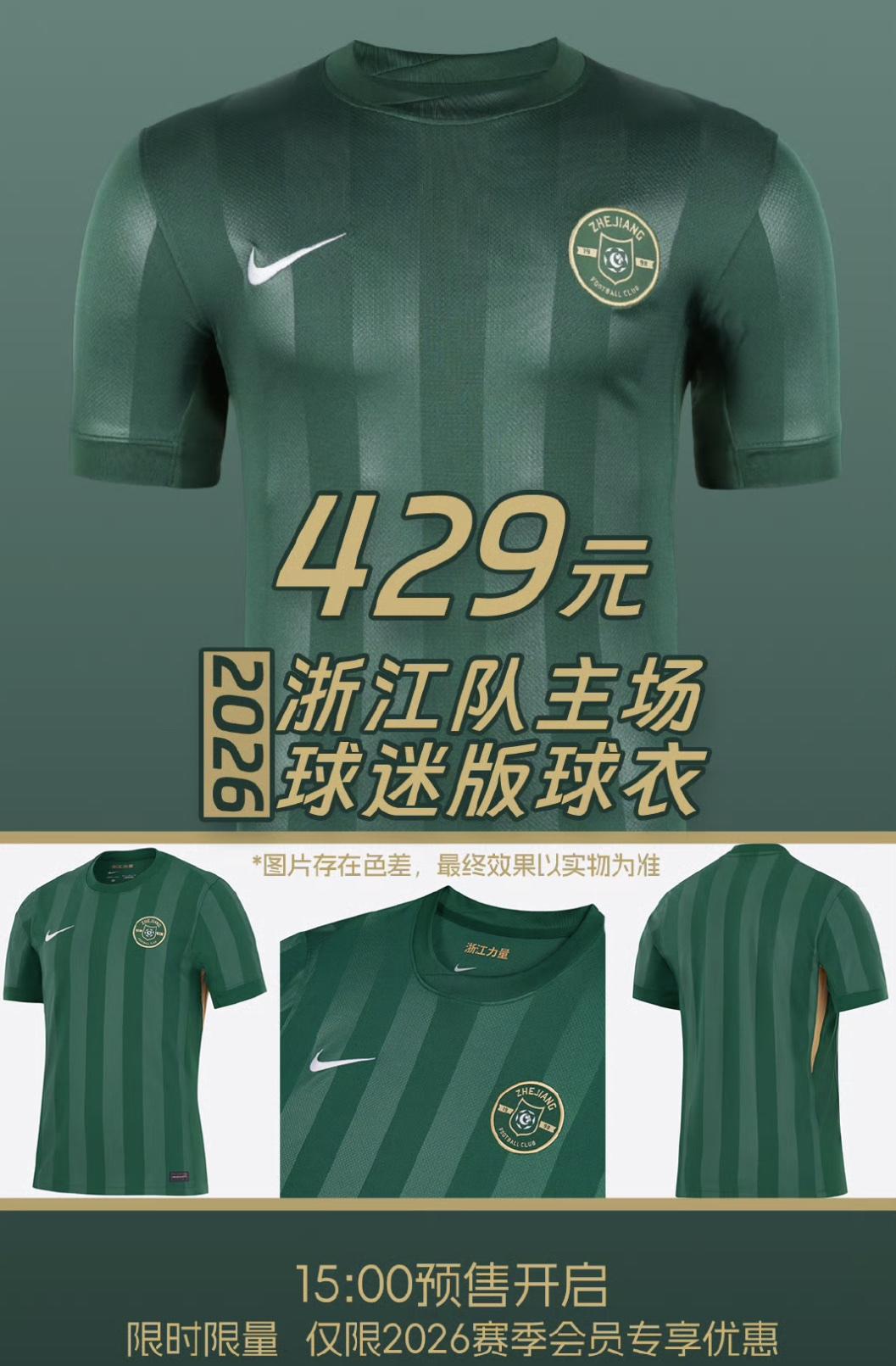 429一件!浙江队新赛季主场球衣预售,球迷直呼“西瓜皮”! 近日,中超浙江队开启了2026赛季主场球迷版球衣预售,429一件的价格惊掉众多球迷的下巴,最关键的是不仅贵而且丑,球迷直呼像“西瓜皮”。 浙江队发布的得消息对这件球衣的描述是: 主场球衣以细腻的压纹线条勾勒经典轮廓,细节处融入白金点缀,彰显球队一贯的优雅气质与传承精神,整体设计简约而不失格调,延续了俱乐部的标志性风格。 光看文字还以为是多么高大上的衣服,然而给出的图片却惊掉球迷的下巴,这绿不溜秋的实在是难看,有些球迷甚至亲切的称之为“西瓜皮”,这衣服的条纹配上绿色的底色,确实跟西瓜皮有异曲同工之处。 最让球迷不能接受的是这件球衣的价格,429块买一件短袖确实太贵了,这个价格放在日常生活中可以买好多件这种衣服了,一般这种短袖也就几十块,浙江队卖429元,而且是会员限时优惠价格,只能说浙江球迷真有钱。