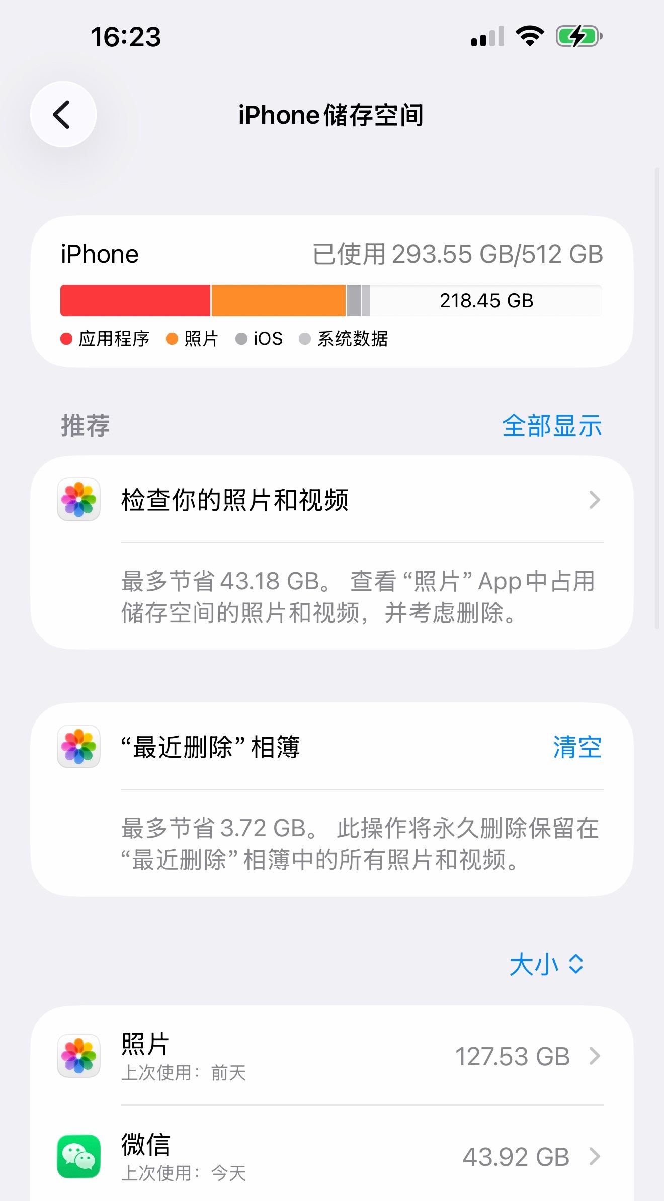 相册占了127.53个GB,每次听演唱会音乐节录的视频都舍不得删,但是也不会再听了…
