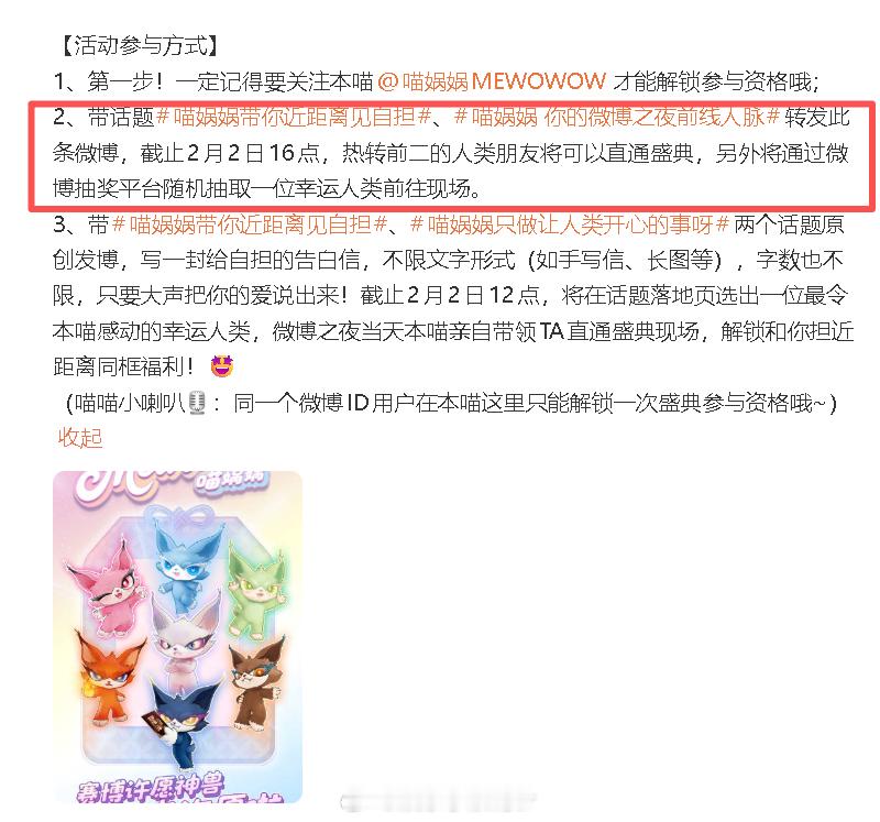 喵娲娲带你近距离见自担 什么什么??喵娲娲又来送福利了?这次还是重磅加码,转发接