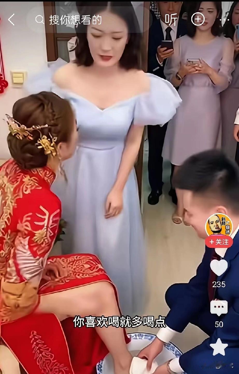 婚礼现场,新郎正蹲着为新娘洗脚。 新娘闺蜜突然凑近:“快让你老公把洗脚水喝了,才能证明他爱你啊!”声音响亮,瞬间吸引众人目光。 新郎尴尬得满脸通红,忙说:“别听她的,亲朋好友都看着了。” 新娘被搅了好兴致,脚抬起来,洗脚水溅了闺蜜一身。她对着闺蜜大吼:“你喜欢喝就多喝点!” 闺蜜惊慌失措,连连道歉:“对不起,对不起,我开玩笑的。” 新郎和新娘对视一眼,都忍不住笑了,那笑容里满是爱意与默契,让这场闹剧成了婚礼上最甜蜜的插曲。