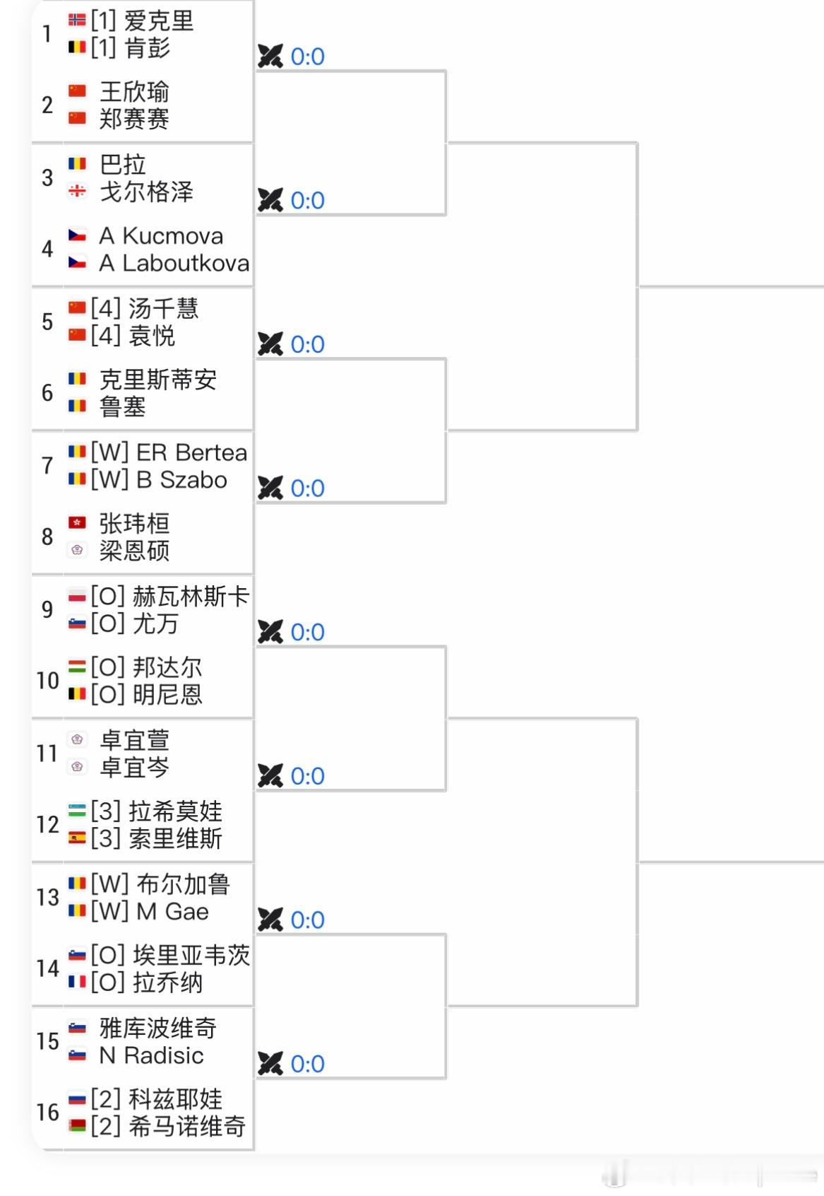 WTA250🇷🇴/🇨🇿站双打签表🇷🇴克卢日-纳波卡站🇨🇳王欣瑜/🇨🇳郑赛赛 vs🇳🇴爱克里/🇧🇪肯彭