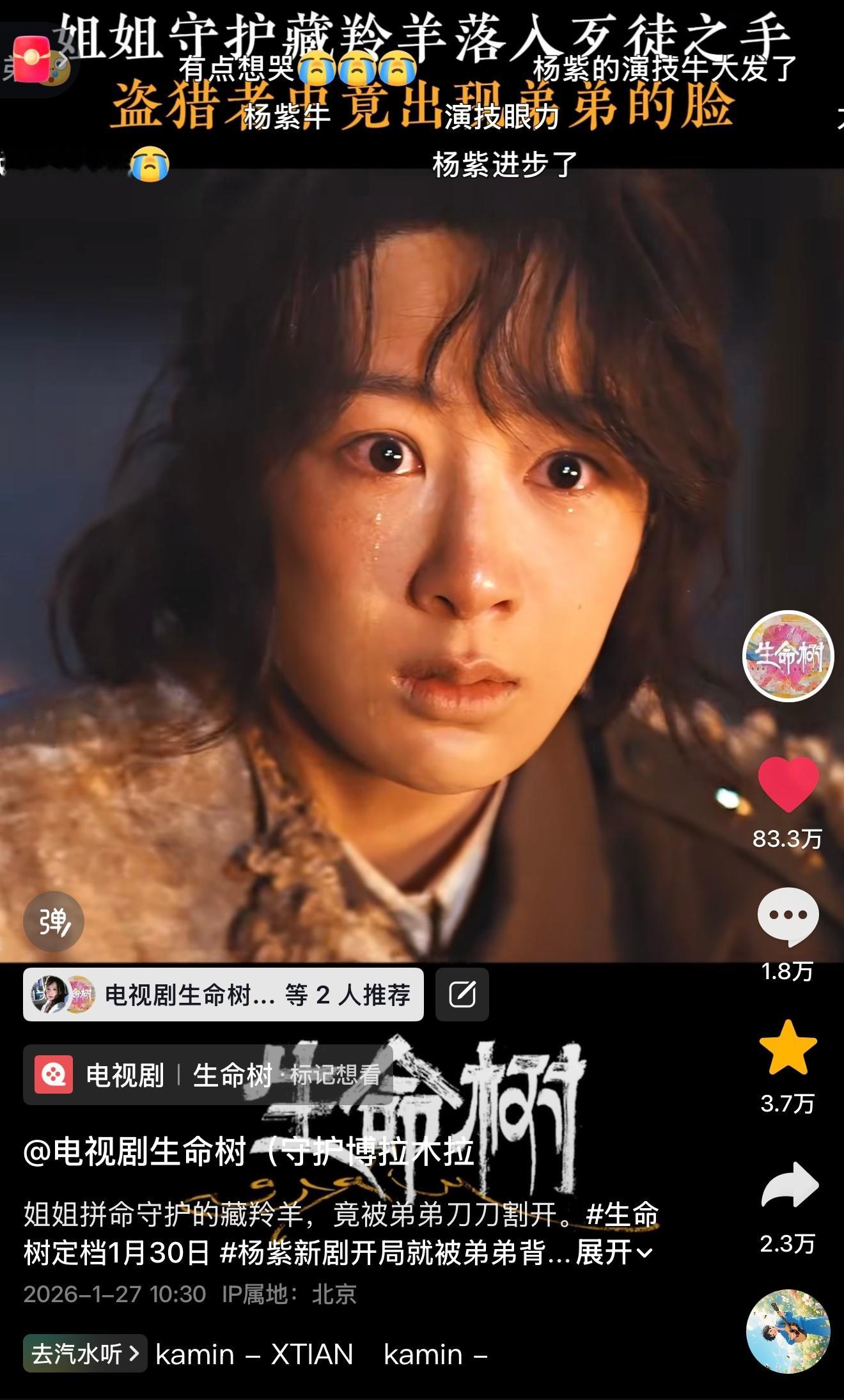 生命树首日云合占比3.5,预估580左右🫘这个视频快百万赞了,冲得很快,是紫紫演技向的百万赞生命树首日云合