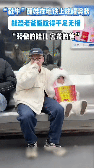 社牛女儿带社恐老爸坐地铁,主打一个公开处刑现场。 小家伙刚拿了奖状,一路举着不肯撒手,一上地铁就把奖状摊在腿上,眼睛亮晶晶地瞟向周围乘客,那小表情仿佛在说:“快看!我是全班最棒的小孩!” 旁边的叔叔阿姨都被逗笑了,纷纷投来夸赞的目光。 再看她爸,耳朵尖都红透了,坐也不是站也不是,恨不得找个地缝钻进去,心里估计在呐喊:“我的小祖宗啊,咱低调点行不行!”社恐崩溃瞬间 熊家长社死