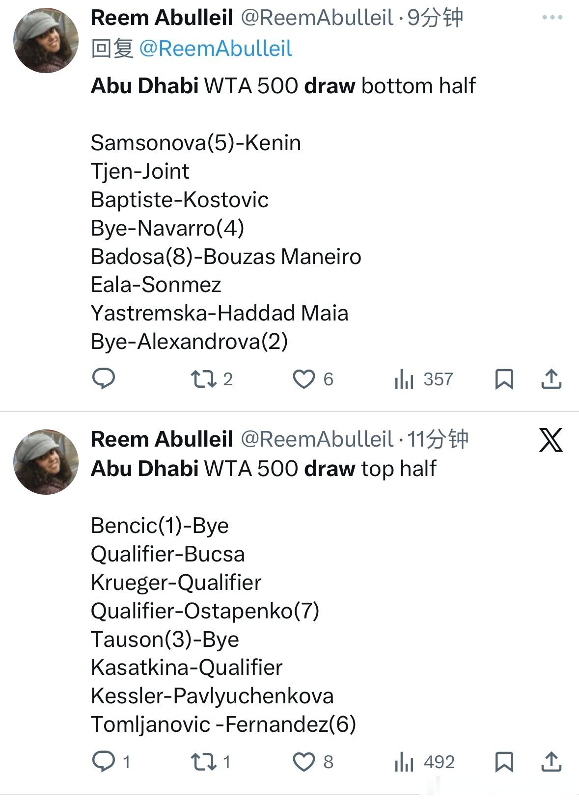 郑钦文退出阿布扎比赛郑钦文,并没有出现在阿布扎比500赛的签表中。随着莱巴金娜进入澳网2026女单决赛退出这站,本西奇作为卫冕冠军成为本站1号种子!wta