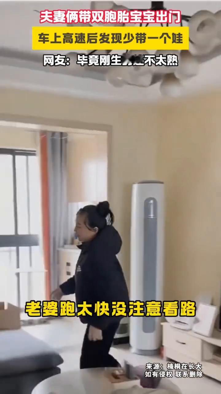 夫妻俩带双胞胎宝宝出门,车上高速后发现少带一个娃。网友:毕竟刚生的还不太熟。 楠桐在长大。 1月30日湖北(发布)。此时老婆心里已经慌了,终于下高速了,一路狂奔不敢怠慢。春节将至,大家不要像我一样,千万不要把老婆孩子忘服务区了。到家了,这不靠谱的爹妈,老婆跑太快没注意看路,摔了一跤,还好在睡觉。