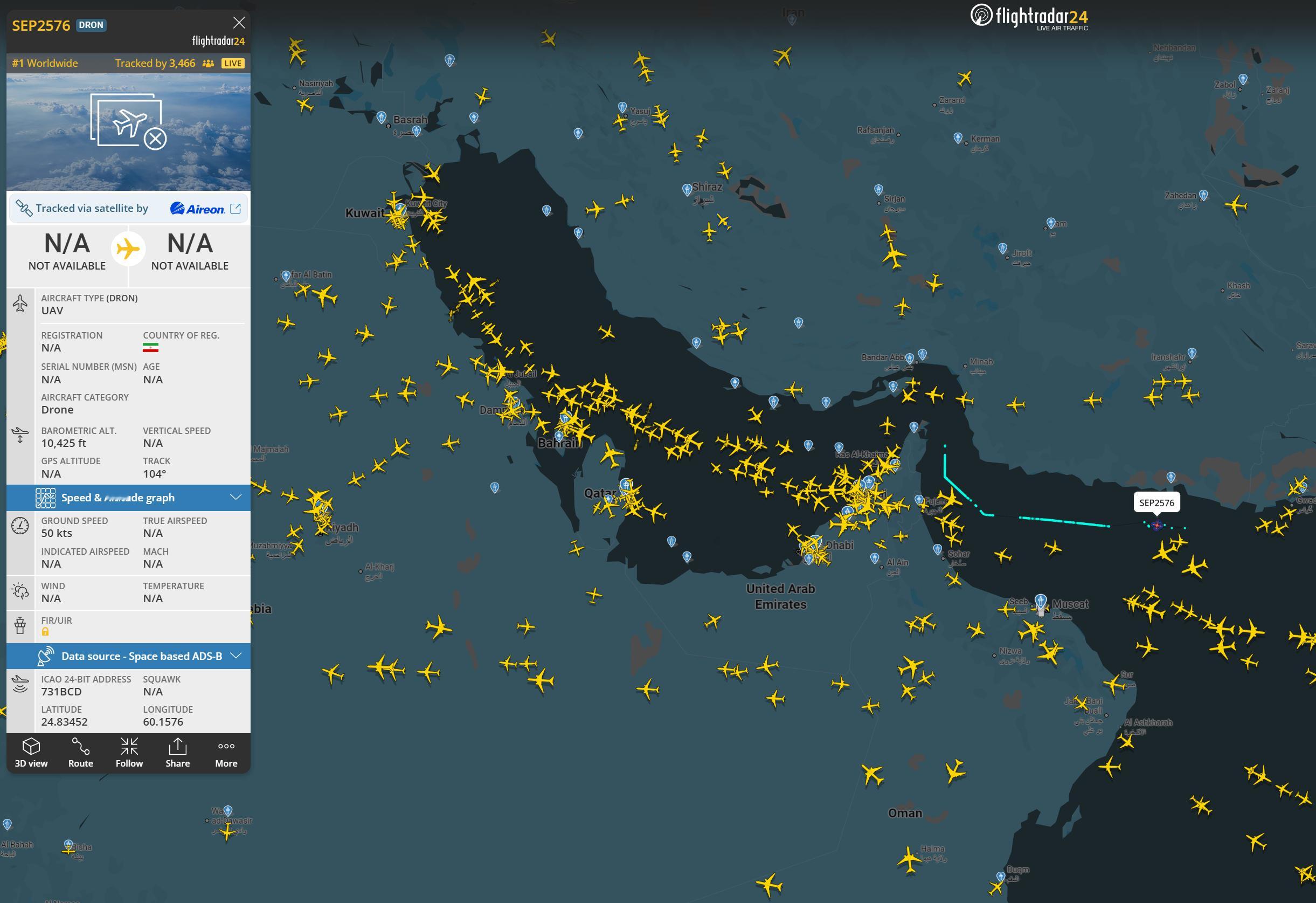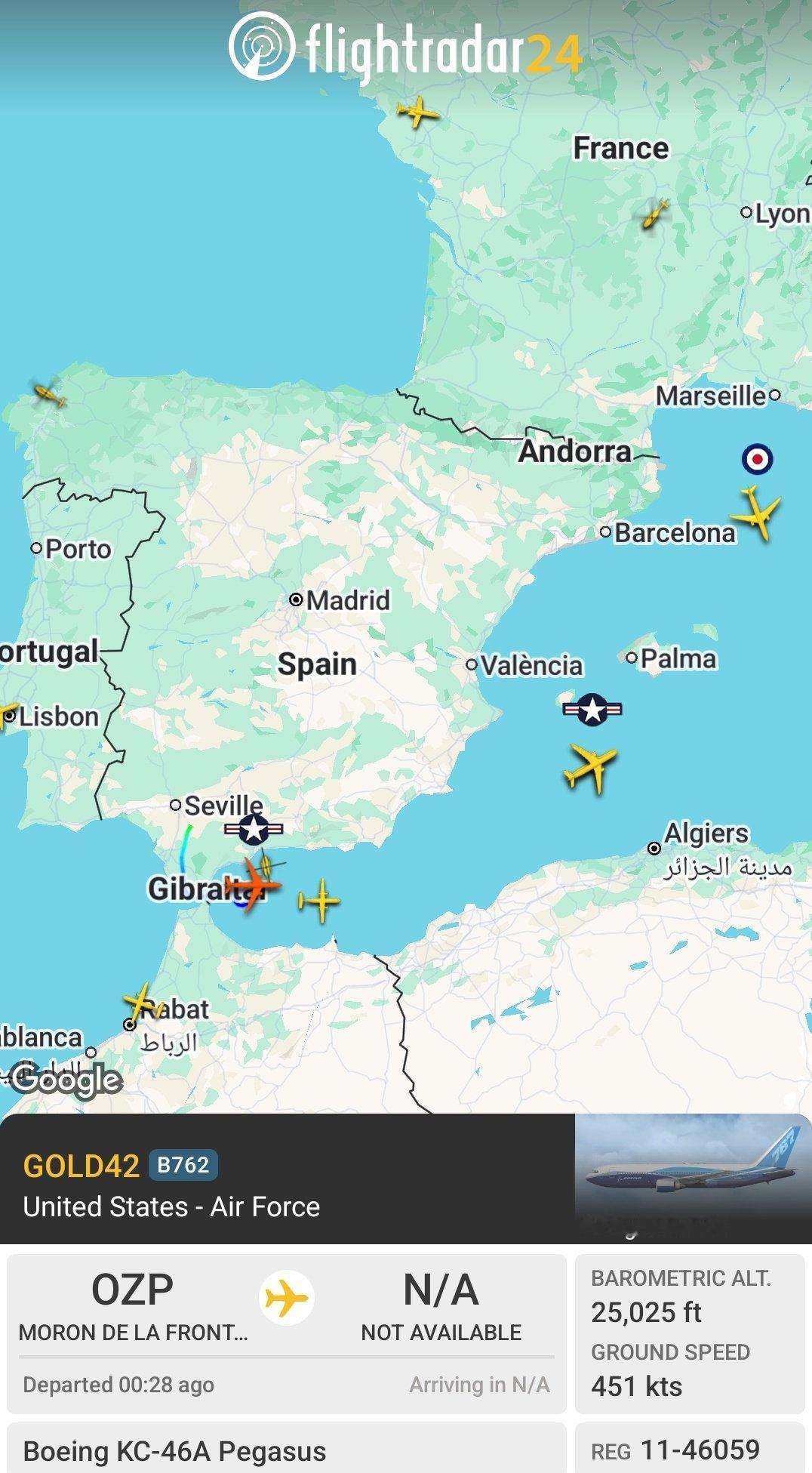 🔻转场的 EA-18G 电战咆哮者正从西班牙莫龙基地起飞,由加油机伴飞前往中东(图1-2)。🔻GOLD31 ✈️ KC-46A 注册号 17-46027🔻GOLD32 ✈️ KC-46A 注册号 18-46044🔻GOLD42 ✈️ KC-46A 注册号 11-46059🔻美军中负责踹门任务的最后一拨力量,马上要就位了。🔻而伊朗革命卫队无人机正在阿曼湾上空巡逻(SEP2576 十六进制码 731BCD)🔻via F24🔻大的要来了?特朗普称已向伊朗告知最后期限热点现场海外新鲜事