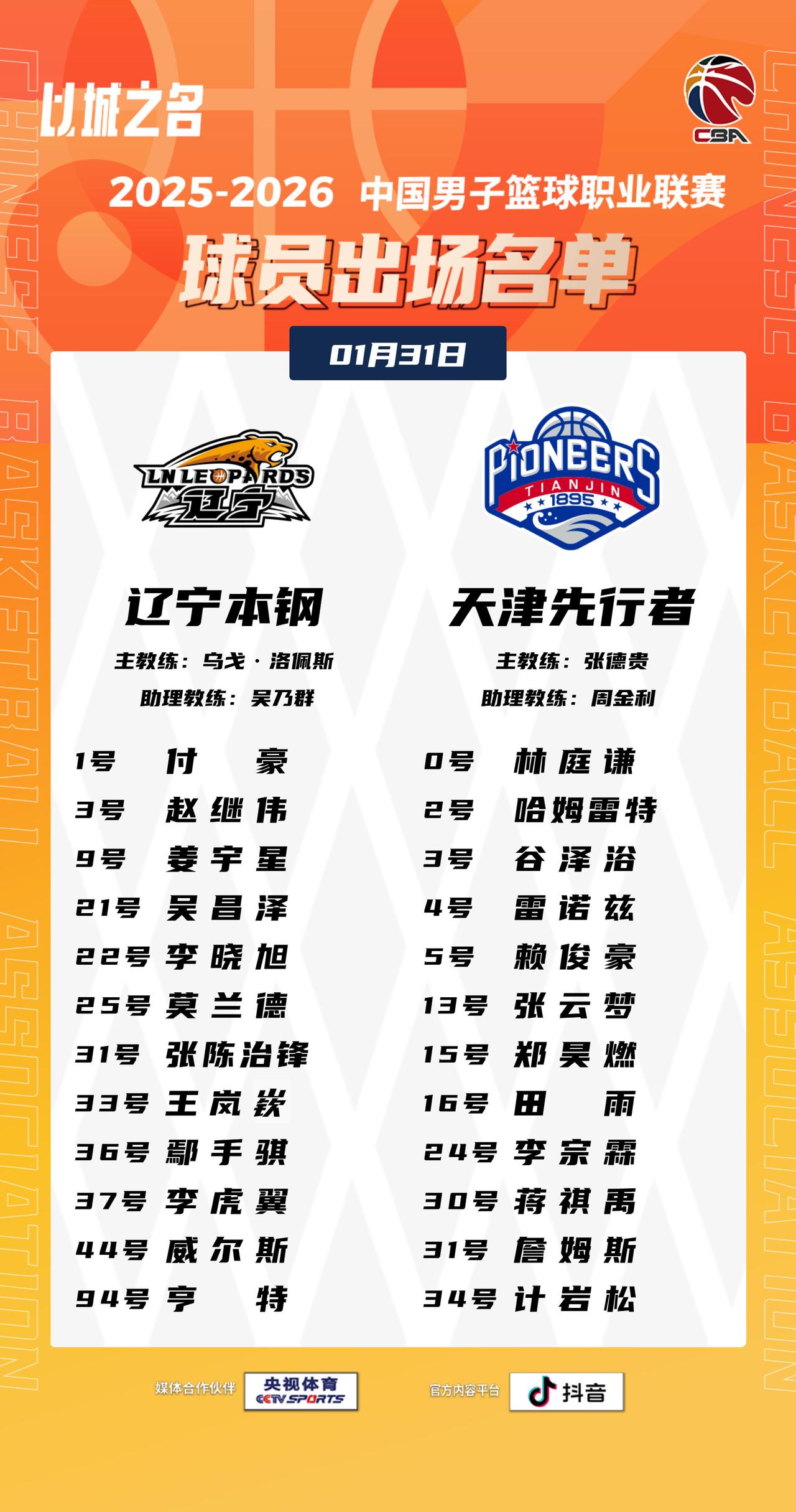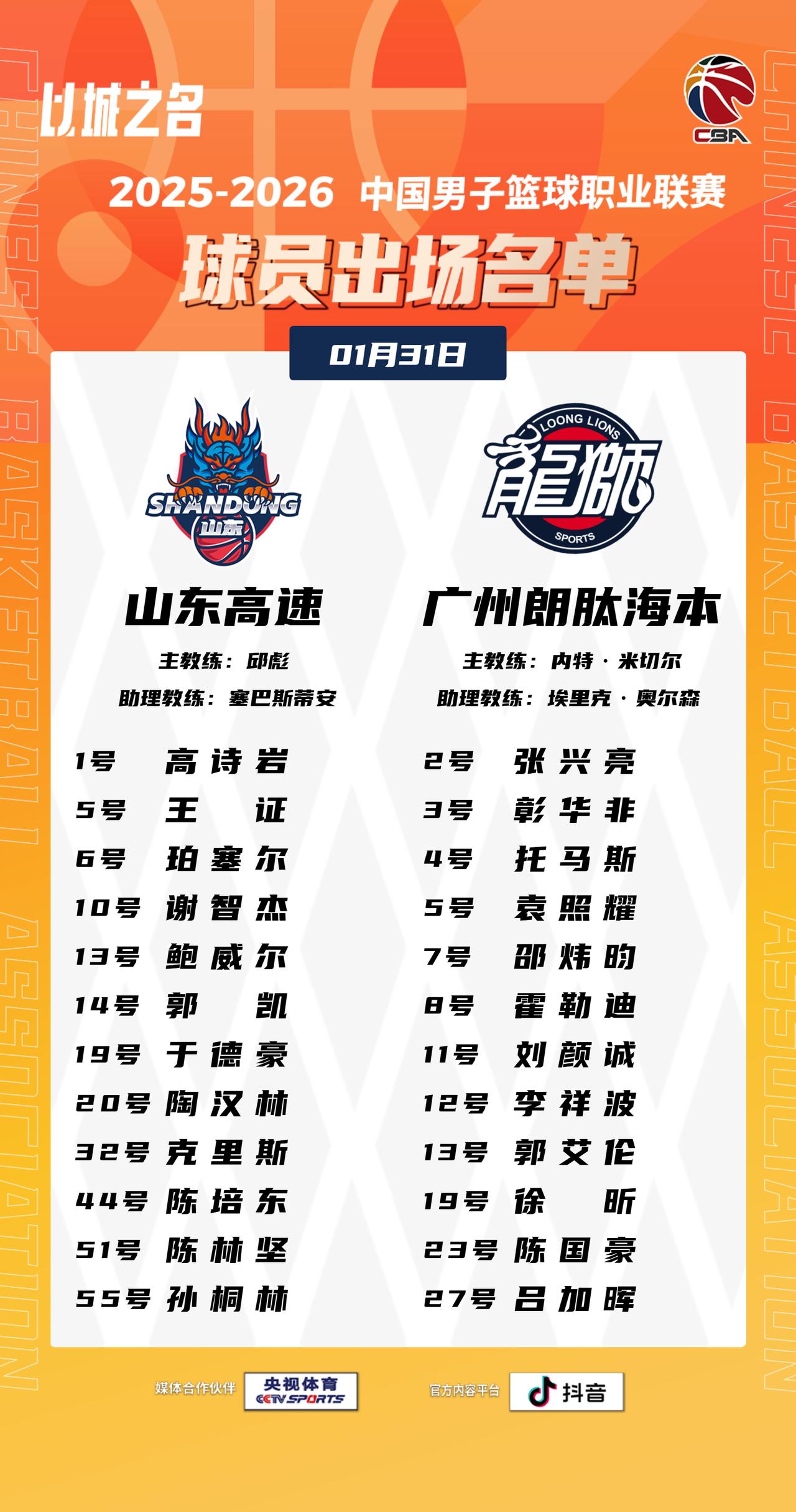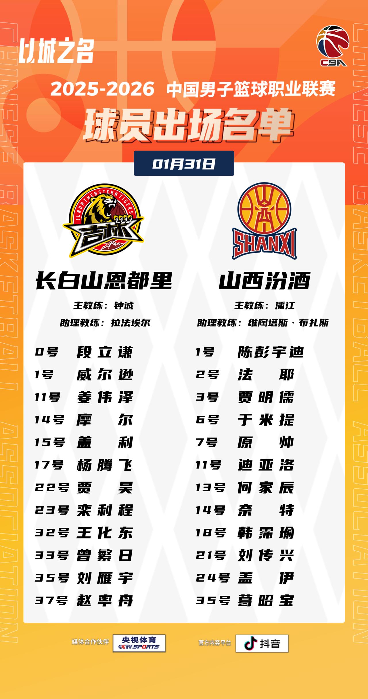 【大名单出炉】2025-2026赛季CBA联赛常规赛第二十二轮今晚开打,4场比赛将在19:35同时跳球,敬请期待!