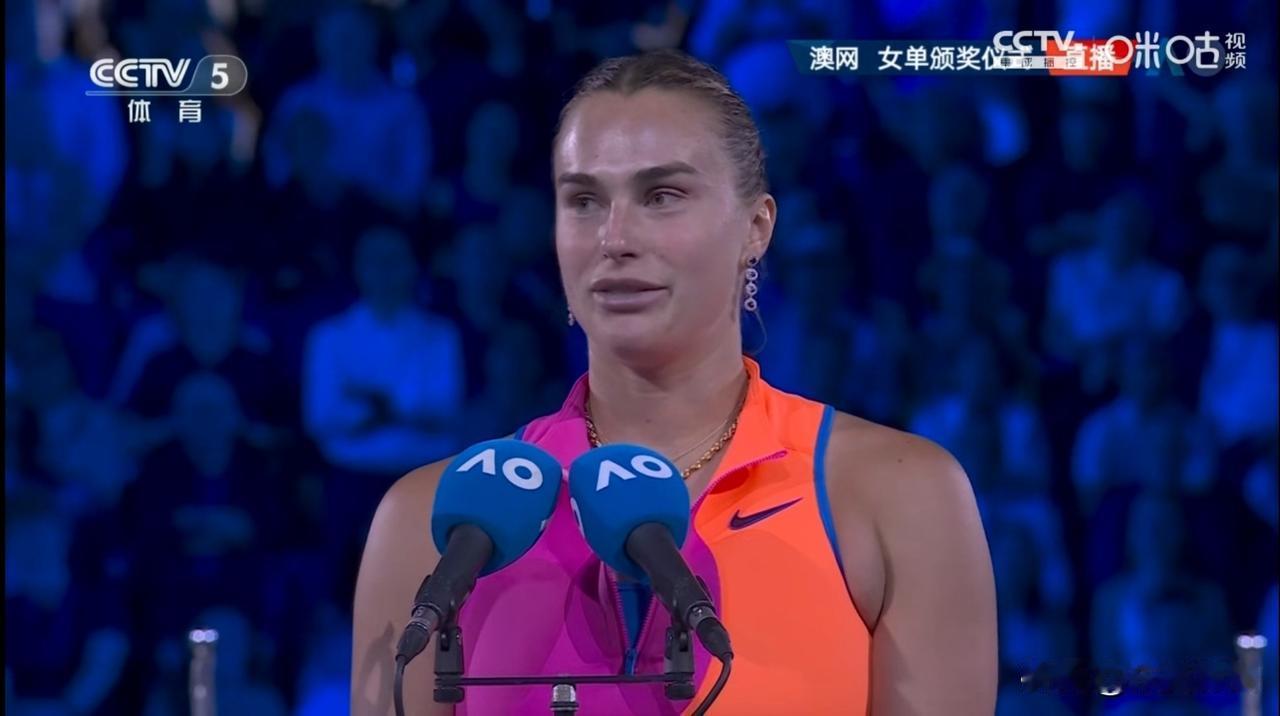 萨巴伦卡的获奖感言, 祝贺莱巴金娜获得冠军,我喜欢在这里比赛,喜欢在你们面前打球,我很享受这样的感觉。 她说,希望明年到这里的时候能够做得更好,感谢我的团队。