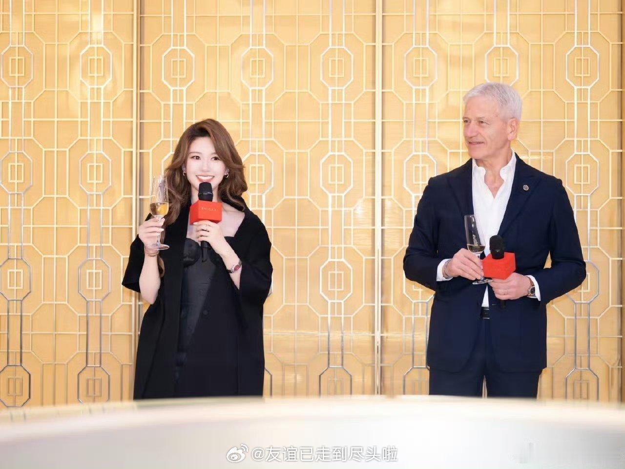 昨天宝格丽活动赵露思和高层合影,很大气自信,明艳美丽
