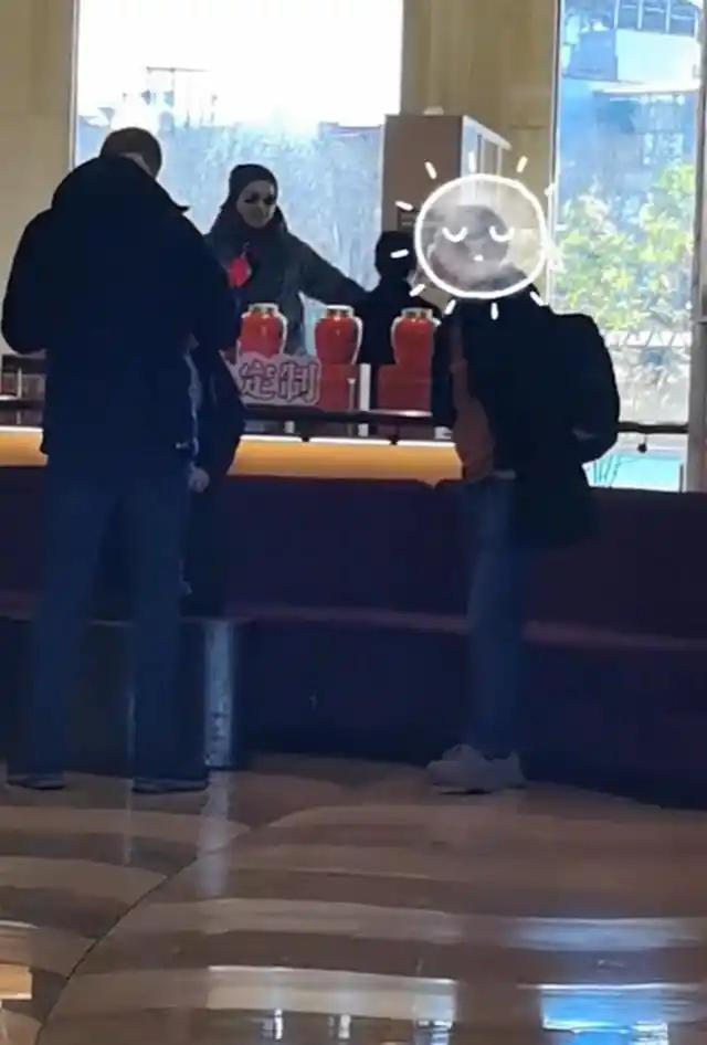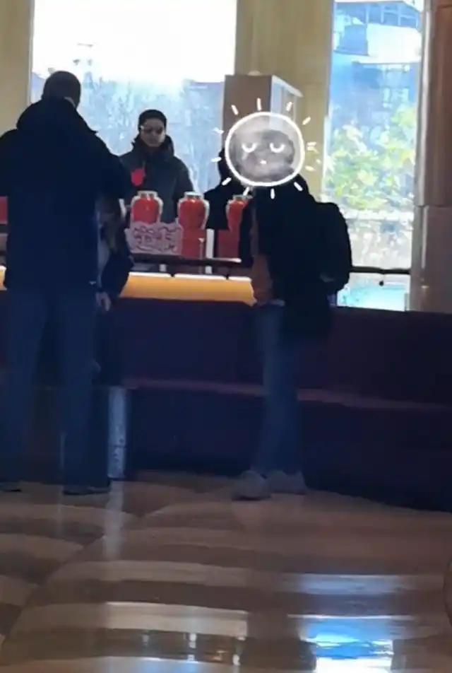 张天爱跟素人合影,胯真的好宽,大宅院似的