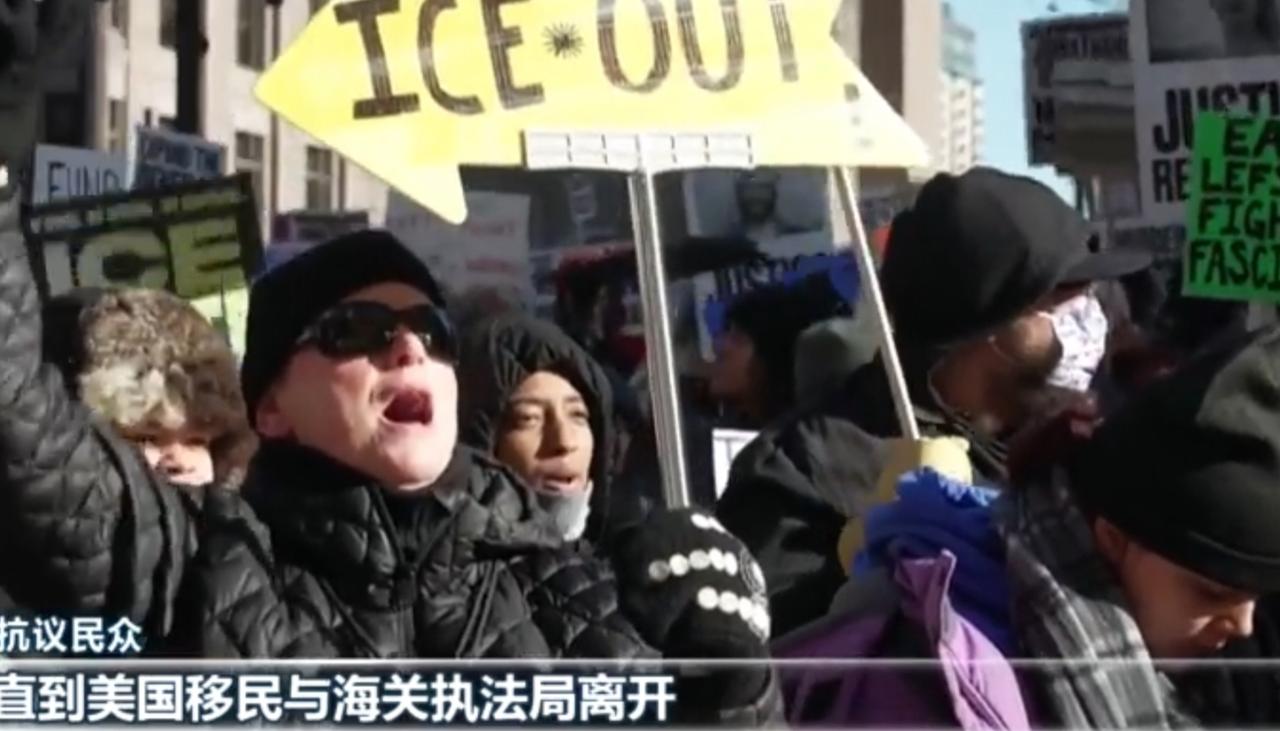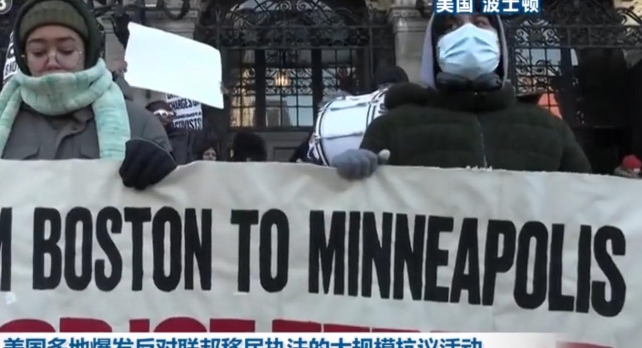 美国多地爆发大规模抗议 反对严苛移民执法 近期,美国明尼阿波利斯、波士顿、华盛顿、洛杉矶等多个城市相继爆发大规模抗议活动,民众走上街头,高举“ICE OUT”“废除移民与海关执法局”等标语,声讨联邦政府严苛的移民执法政策。 在明尼阿波利斯,抗议人群挤满了城市街道,有人振臂高呼,要求停止对移民家庭的突袭与驱逐;波士顿的示威者拉起“从波士顿到明尼阿波利斯”的横幅,传递跨城市的抗议声量;华盛顿的民众在积雪的街道上行进,喊出“移民不是罪犯”的口号;洛杉矶的抗议现场甚至出现了烟雾与肢体冲突,警方与示威者形成对峙。 抗议民众控诉移民与海关执法局(ICE)的暴力执法行为,称其“从车里、家中、学校里强行拖走移民”,剥夺了人们的基本权利与尊严。这场席卷全美的抗议浪潮,不仅凸显出美国移民政策的深层矛盾,也折射出社会对种族歧视与执法不公的强烈不满,更让外界看到美国在人权问题上的双重标准与现实困境。
