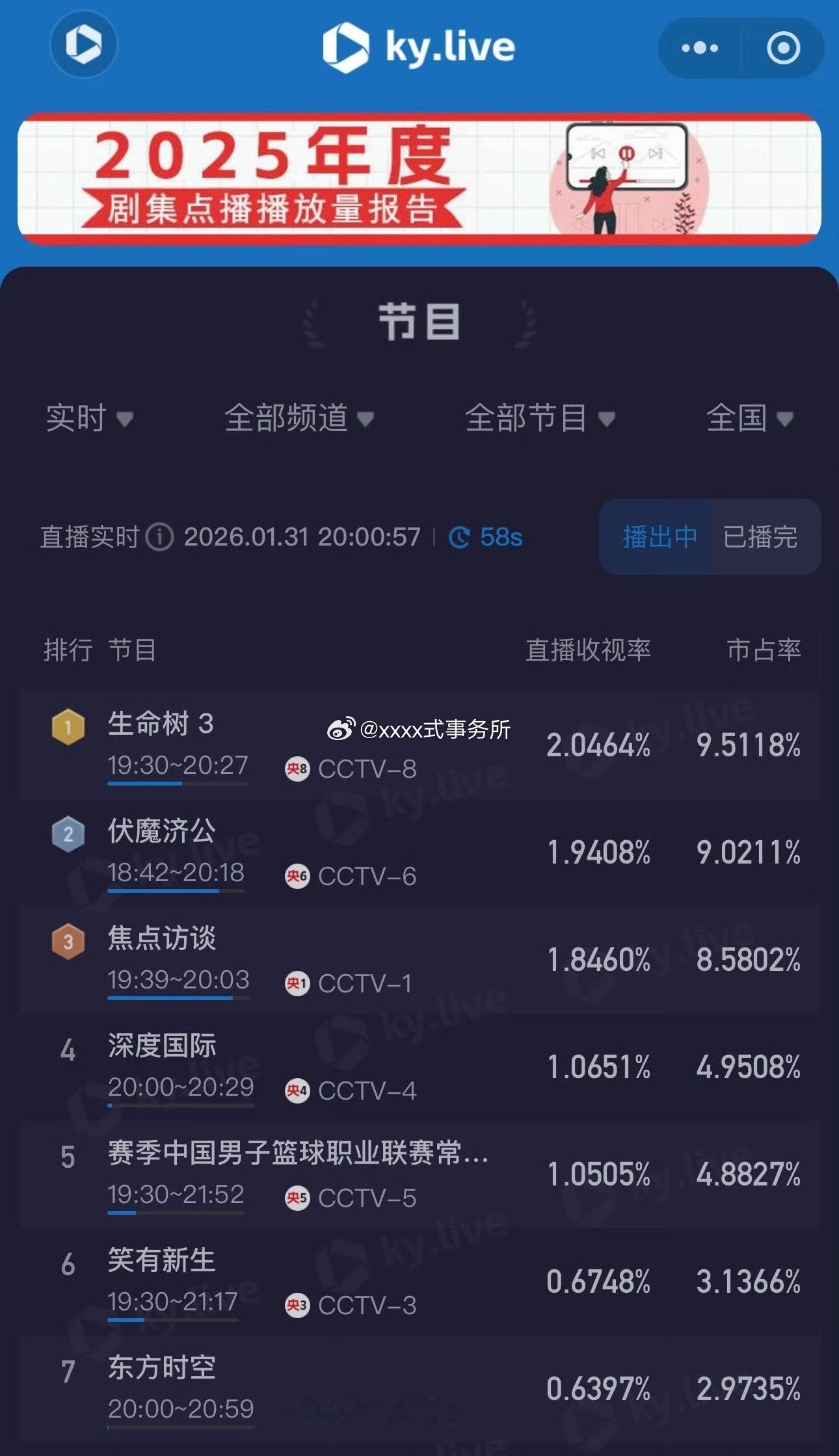 生命树收视率来了,今天的如何