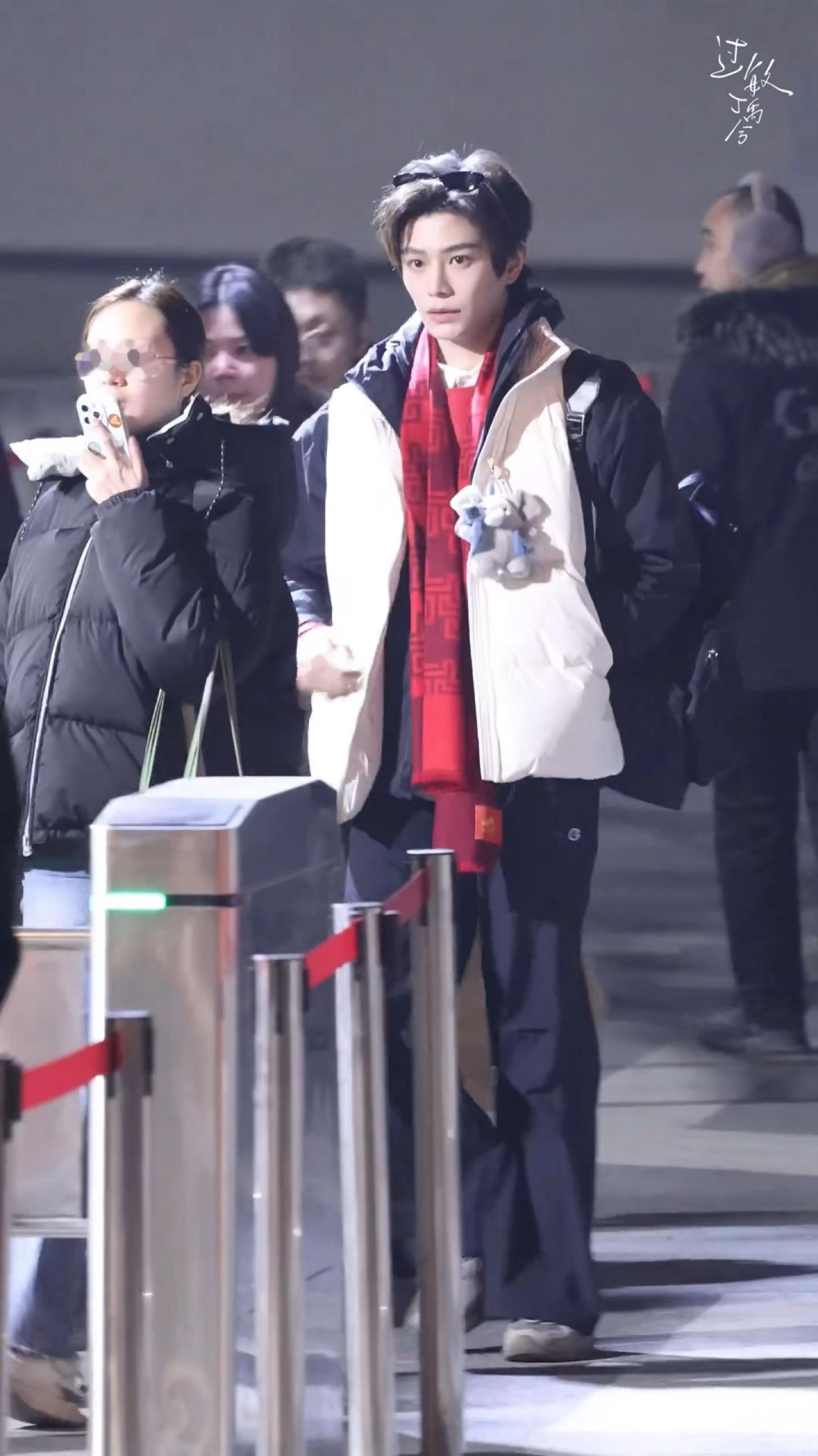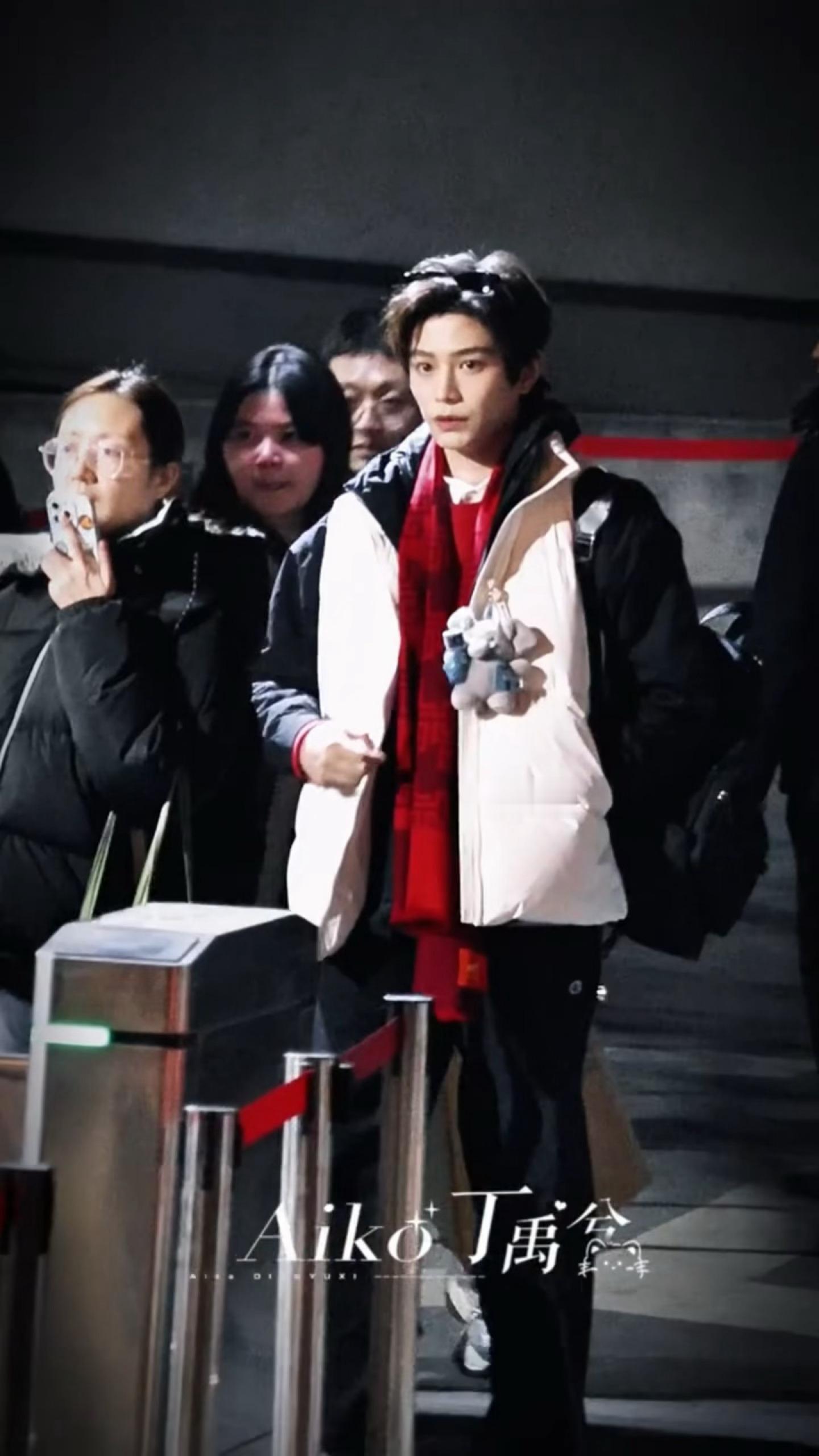 小丁终于戴上了春晚红围巾🧣胸前还挂了小象玩偶🥹