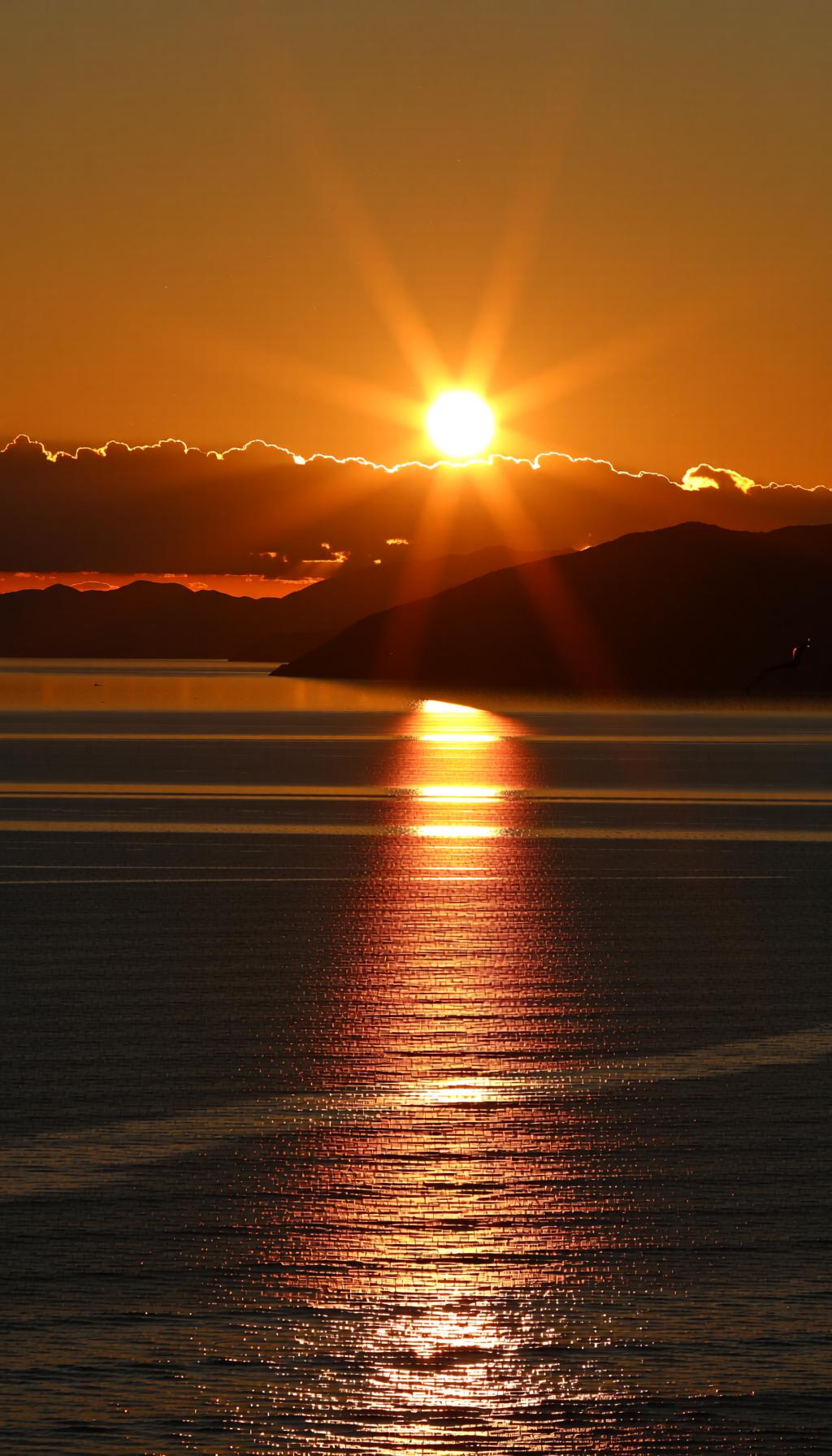夕阳西下,海面波光粼粼,美不胜收。