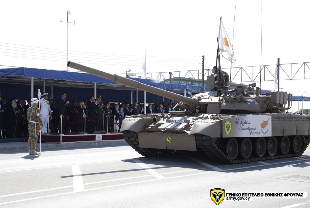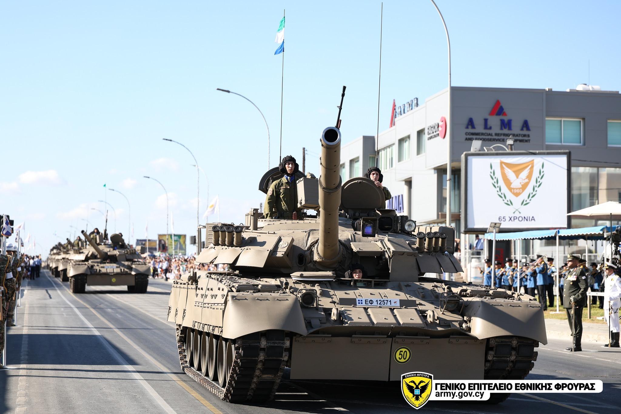 于2025及2024年塞浦路斯共和国独立阅兵上由塞浦路斯共和国国民警卫队所展示的T-80U主战坦克,相当特殊的一点是塞浦路斯配备的T-80U不同于韩国版本,已经升级有带有“凯瑟琳-FC”第二代热成像仪的“PLISSA”热成像炮长火控系统,取代了旧的暴风雪系列微光夜间镜,提供车辆更完备的全天候交战能力。
