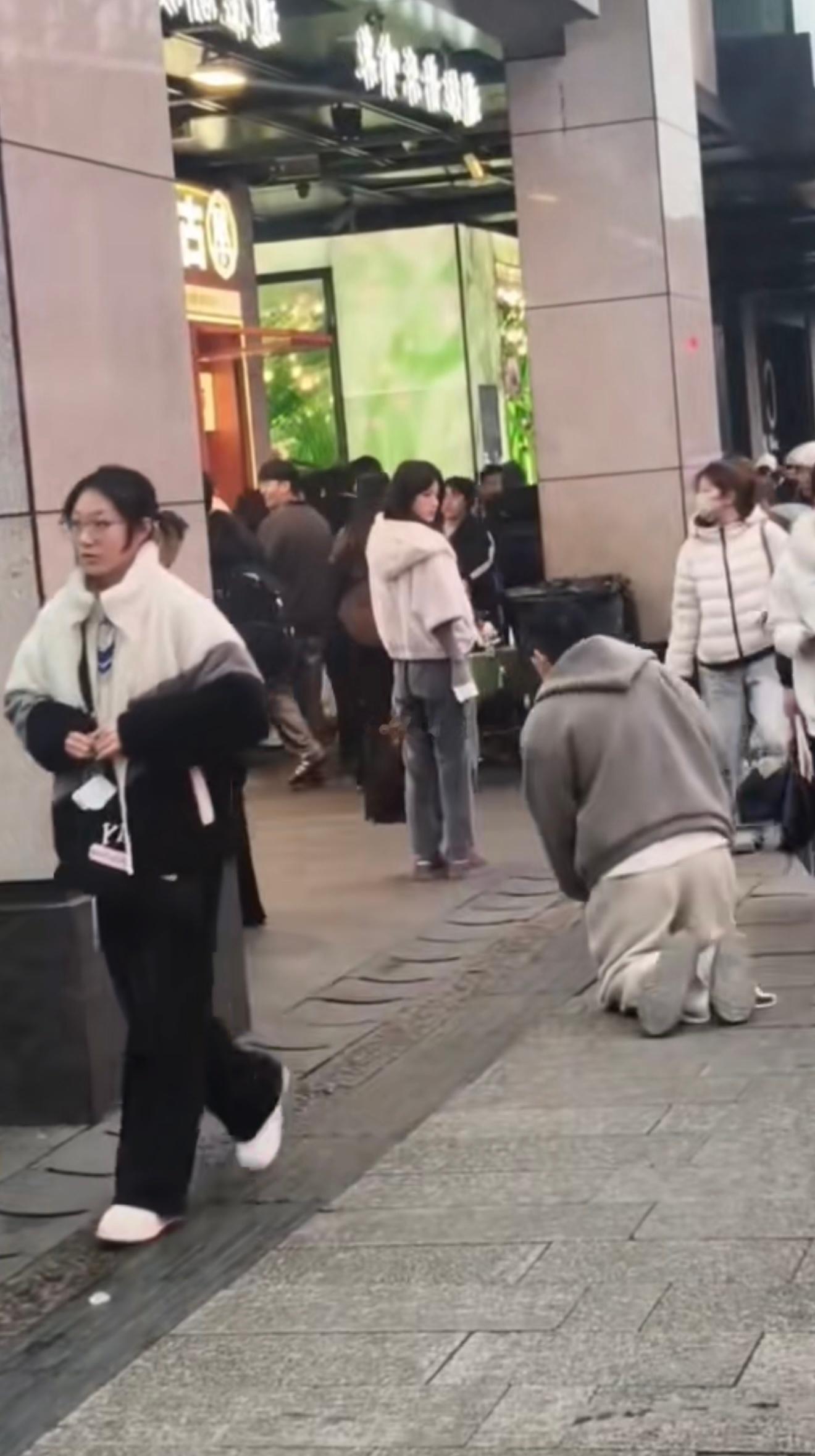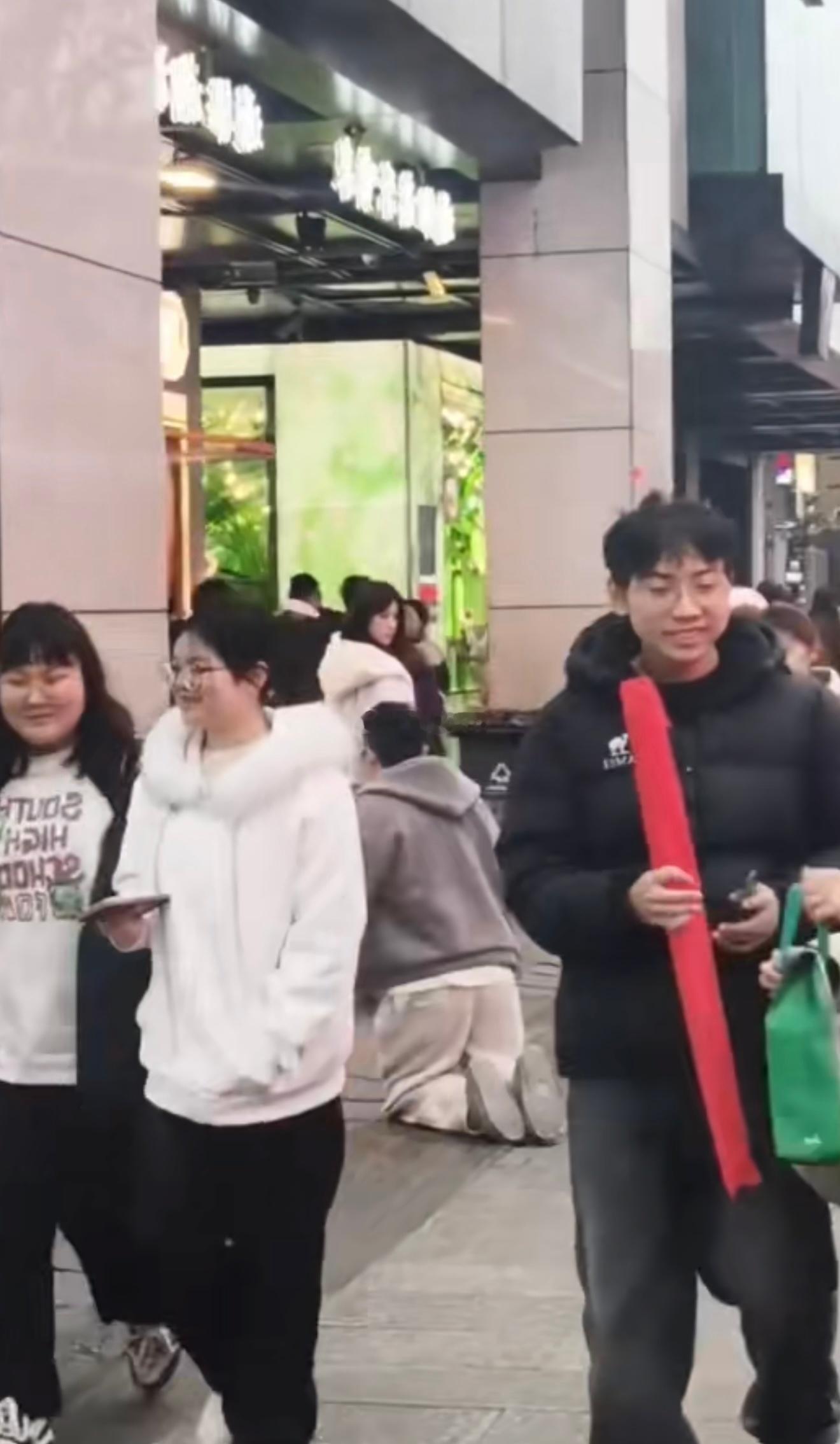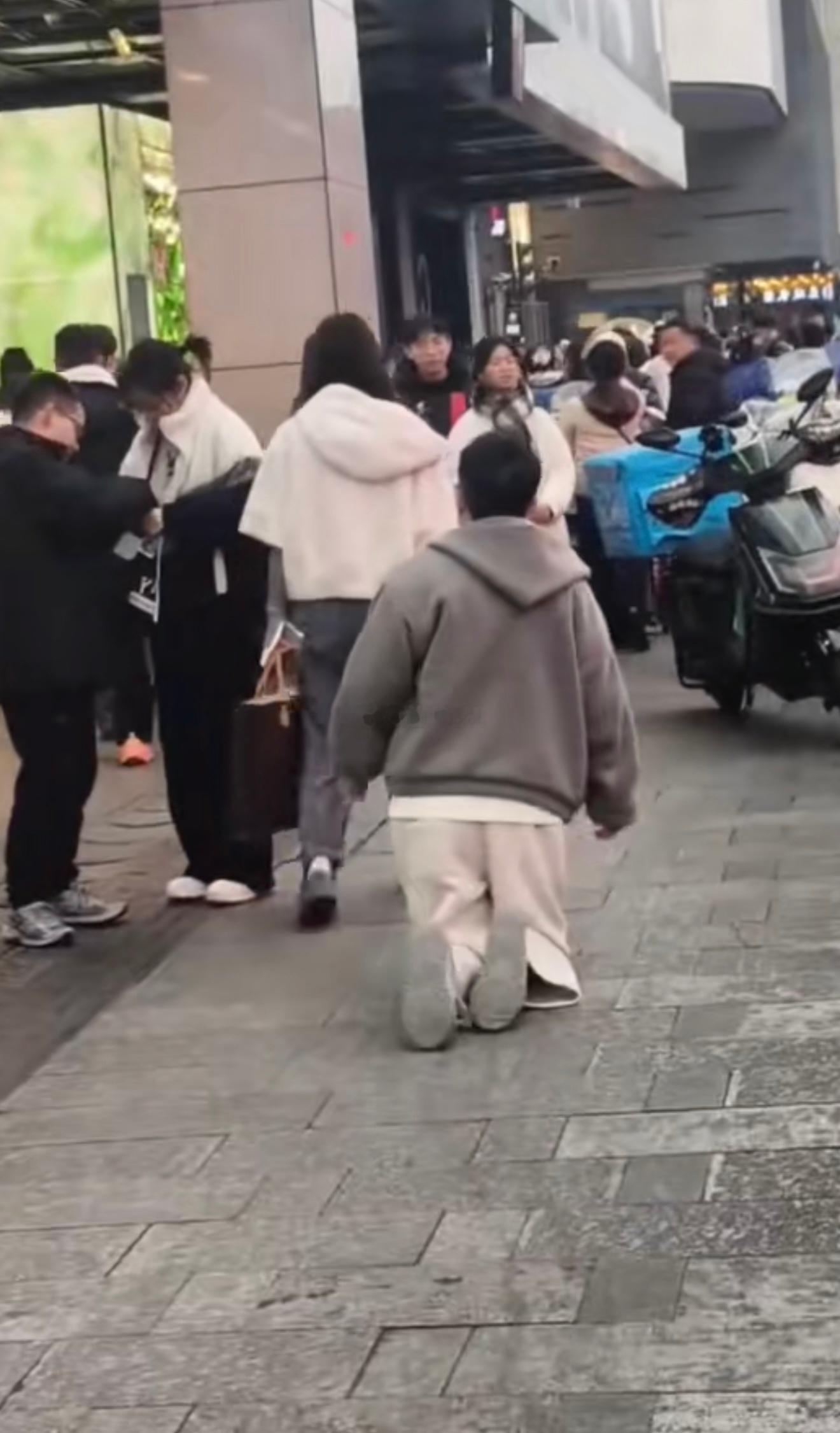 张天爱跟素人合影,胯真的好宽,大宅院似的