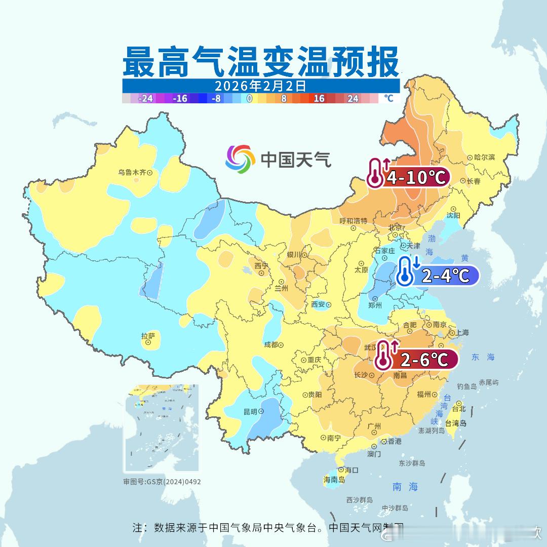 【大回暖】2月5日前,没有明显冷空气活动,我国中东部将出现一轮大回暖。东北和江南多地气温累计回升10℃以上。我国多地气温将转为明显偏高,最高气温15℃线最北推进到河北南部,石家庄2月4日最高就可能有15℃。而长江中下游和江南多地最高气温接近20℃,2月4日长沙和合肥预计最高19℃。立春当天,华北南部到江南不少地方暖得如同春分。