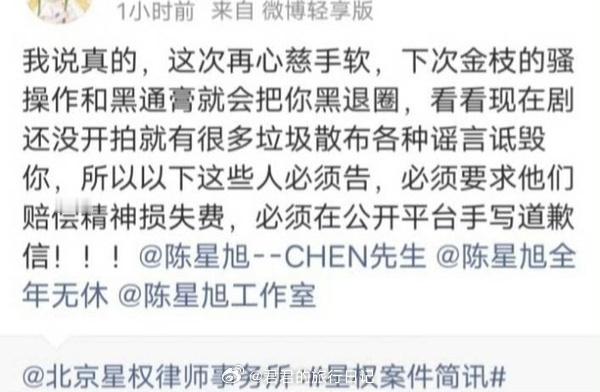 陈星旭发律师函告黑。图1,粉丝:早就该告黑了,这次不能心慈手软!图2,粉丝:没想