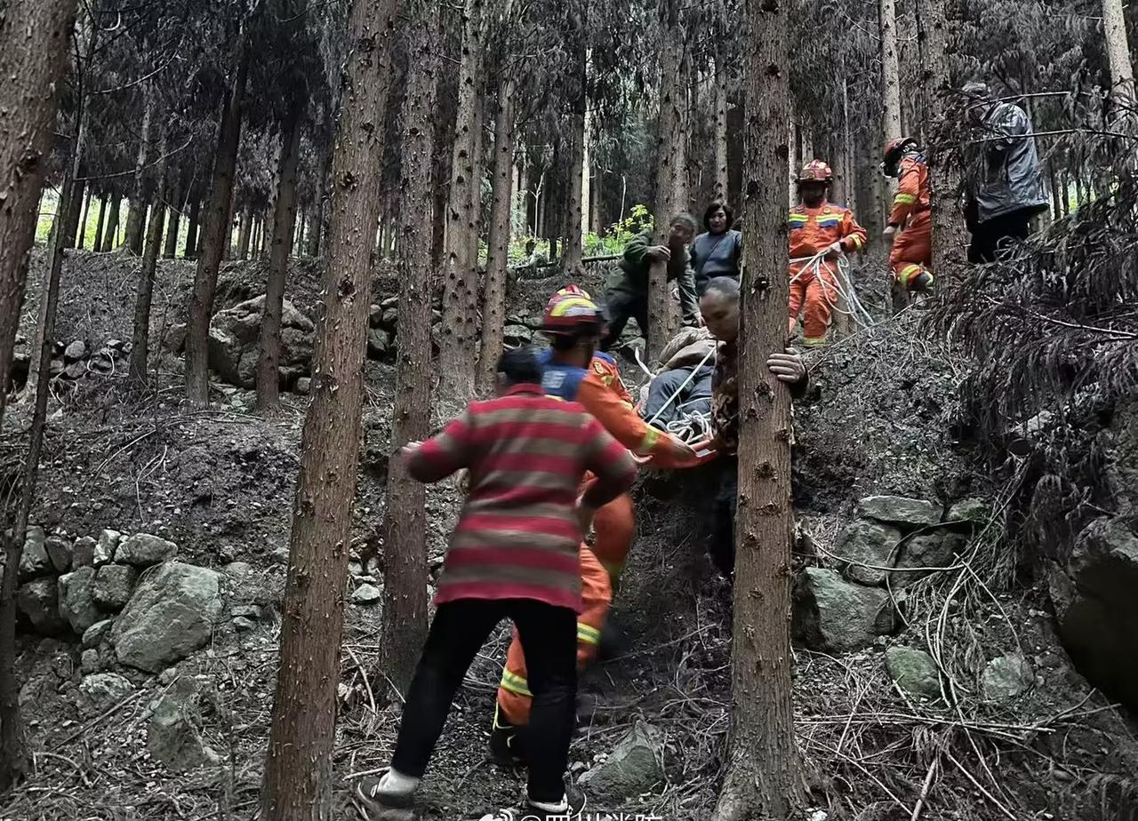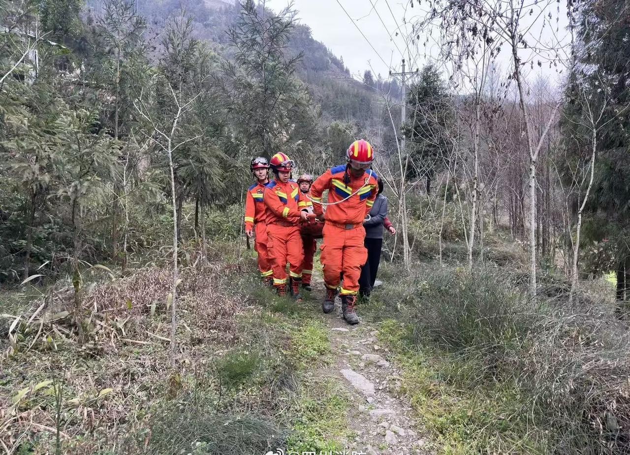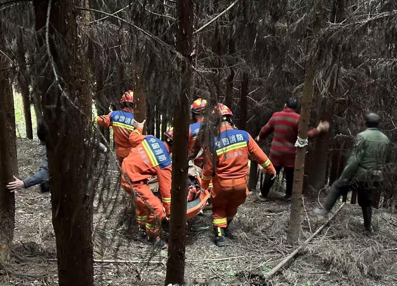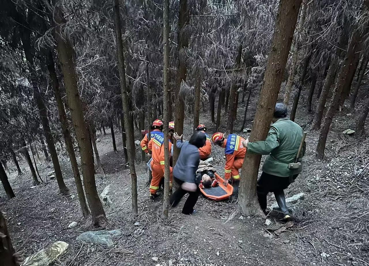 119 火速出警,现场陡坡崎岖,山路无法通行,救援人员先安抚村民、勘察定策,将村民固定担架后,徒步 40 分钟艰难抬运,成功抬至山下移交 120。川川提醒:野外作业遇险别慌,及时报警等待救援。