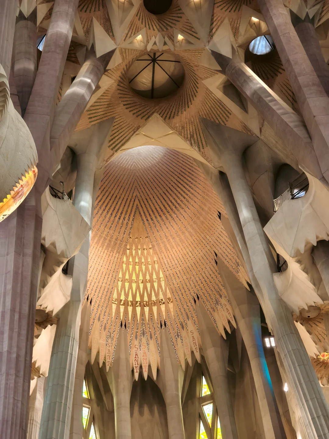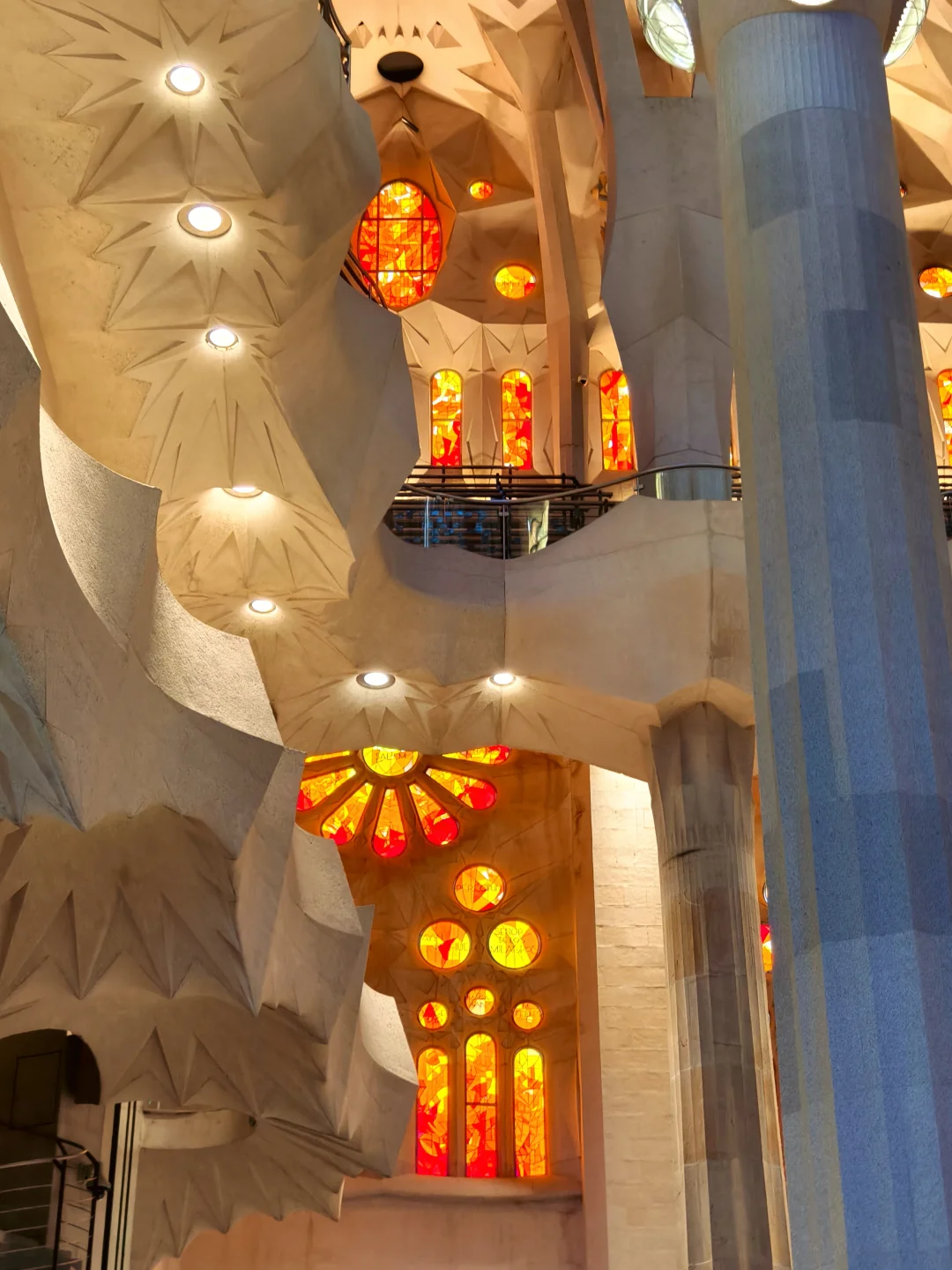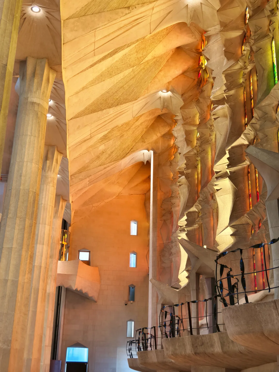 受难面: 这是高迪去世后,后人按他草图盖的。风格就是“冷”,线条硬邦邦的,雕像看着都很痛苦。主打极简和震撼。