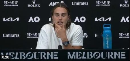 萨巴伦卡在澳网决赛中输给莱巴金娜后的感想 “她打了一场不可思议的比赛。我尽了全力。我奋战到了最后一分。我曾有过机会。感觉我错过了几个,但我的意思是,这就是网球。今天你是输家,明天你就是赢家。希望本赛季我能更多地成为赢家,而不是输家。” “即使在决赛中,我也觉得自己发挥得很好。我尽了全力。今天她的表现更好。我们会和球队谈谈。现在他们试图避开我,因为他们觉得现在和我在一起并不健康”😭😭😭 萨巴伦卡说,她注意到莱巴金娜在过去几个月里最大的变化是,她现在是毫无顾忌地在打球。 “埃琳娜在过去的几个月里似乎真的提升了她的竞技水平。你注意到最近几次和她对战时她有什么变化吗?” 阿丽娜:“我觉得她现在更有信心了,每次击球都毫不犹豫。我虽然也有过机会,但她的水平真的令人难以置信。我觉得她打得更激进了。从决赛开始,她就建立了很强的信心。她绝对是个更出色的球员。因此,她赢得了大满贯,这是一项了不起的成就。” 萨巴伦卡也很了不起,只不过,今天是输给了更棒的莱巴。