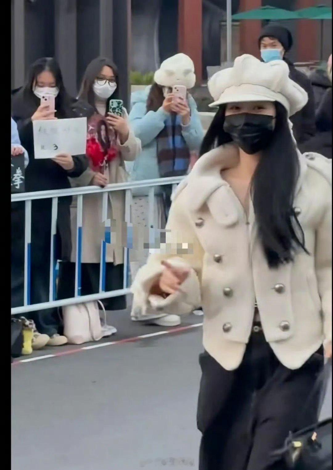 张天爱跟素人合影,胯真的好宽,大宅院似的